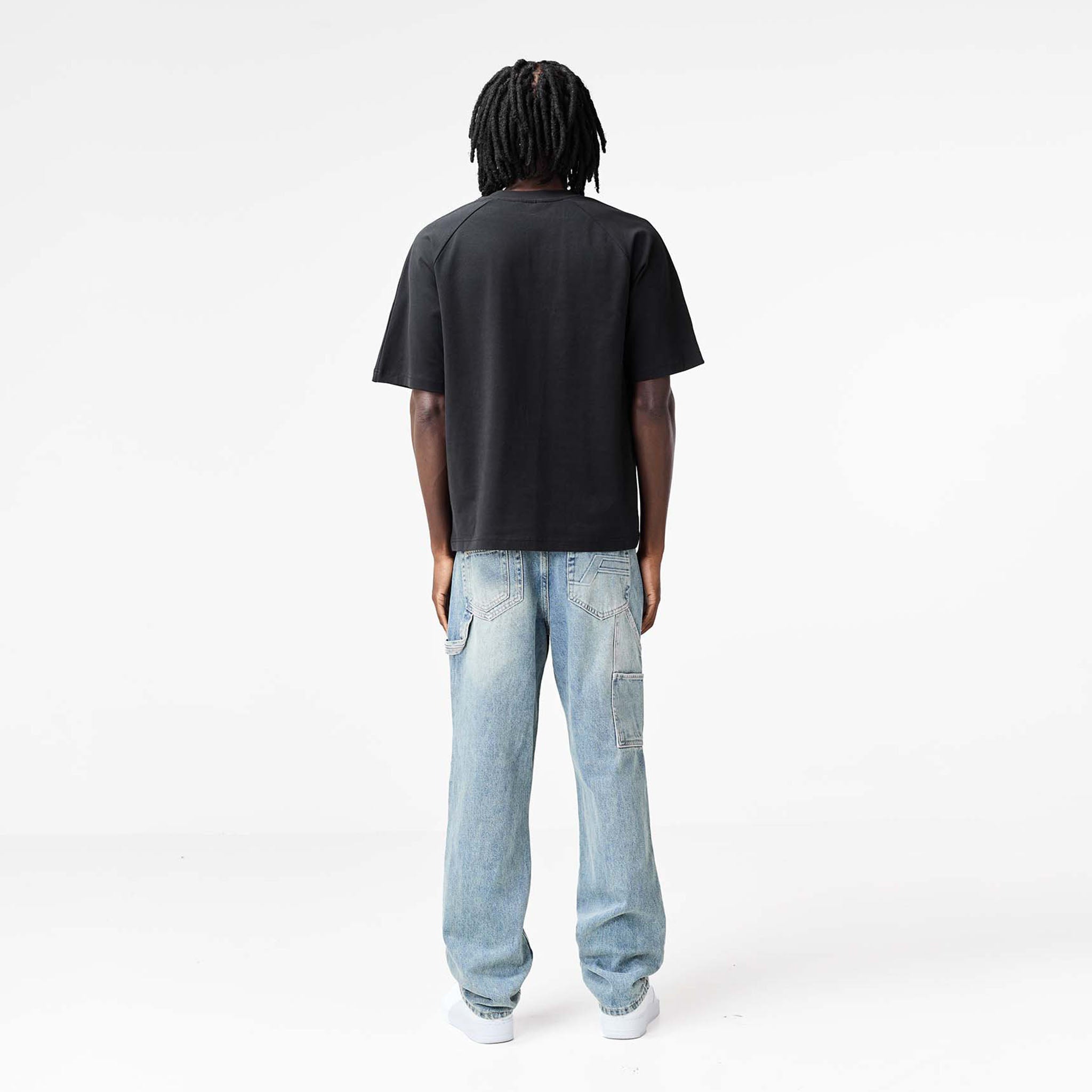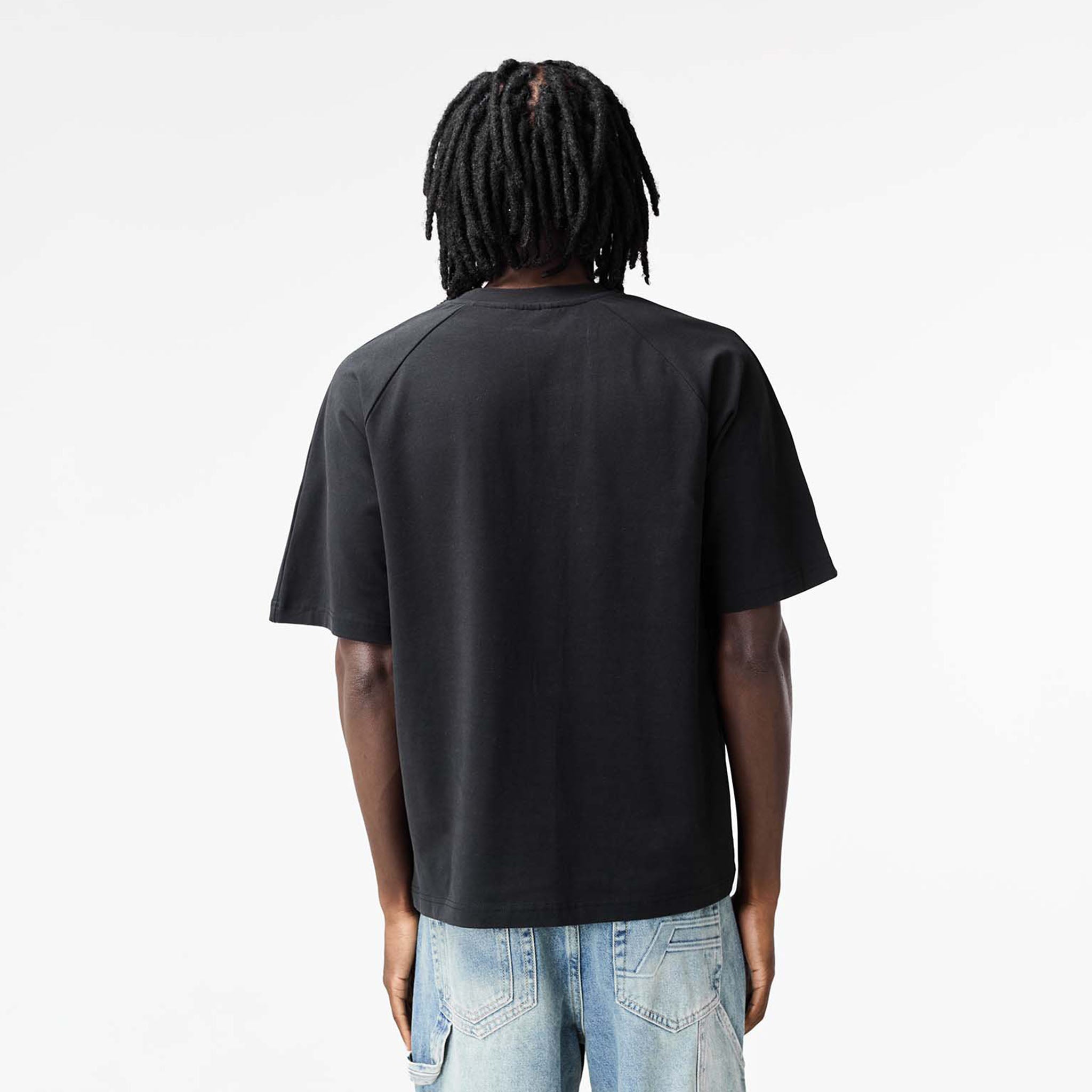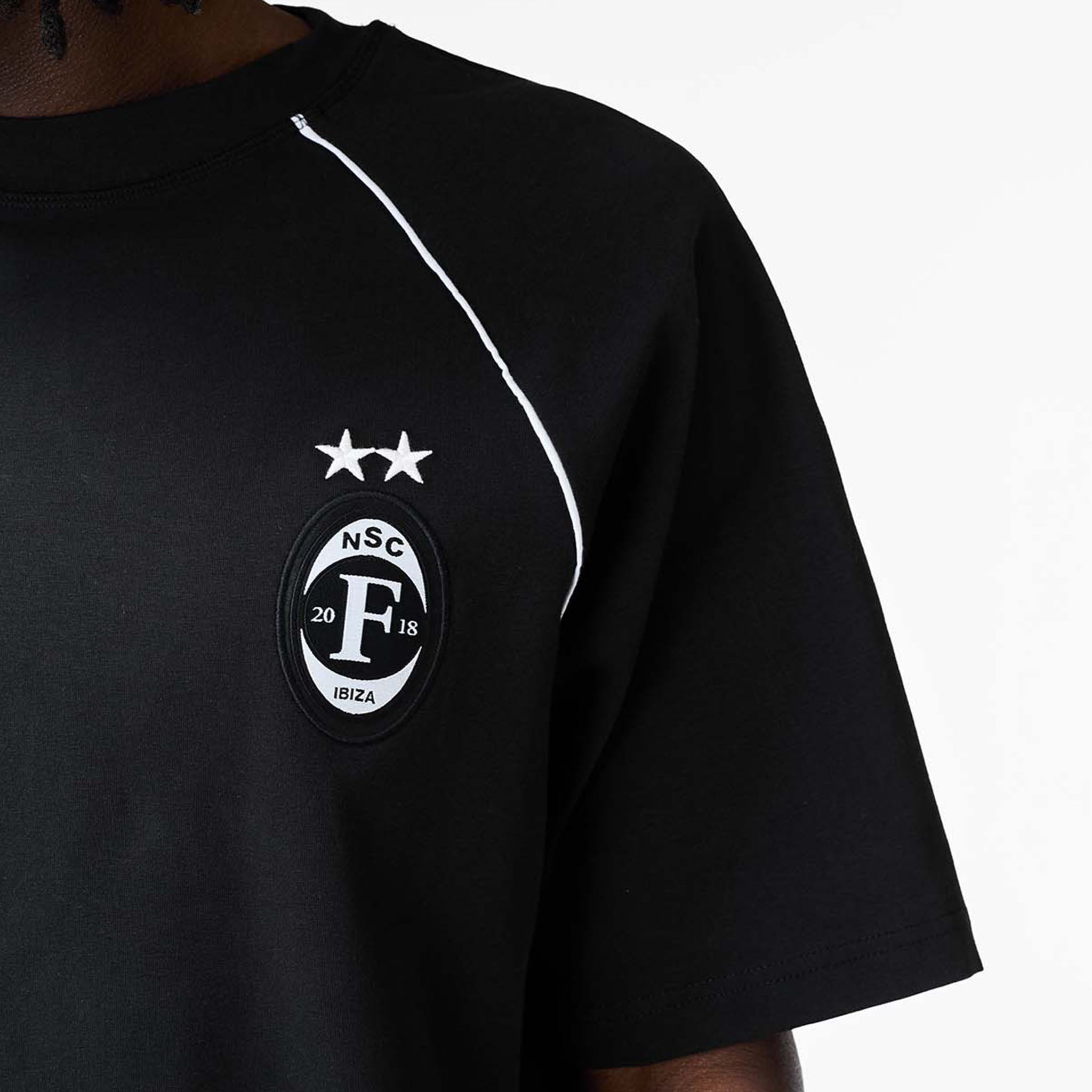 Add an understated edge to your casual style with our Men's Jersey Football Tee in a stylish washed black. This short-sleeve crew neck blends athletic inspiration with everyday comfort, featuring a comfortable neck trim and clean self-turn details on the cuffs and hem. Crafted from soft cotton with a touch of stretch, it provides a great fit. Signature branding elements include a refined chest monogram logo and a stylish chest badge logo. The versatile washed black hue makes it an ideal base for numerous casual looks, paired with jeans, shorts or tracksuits.