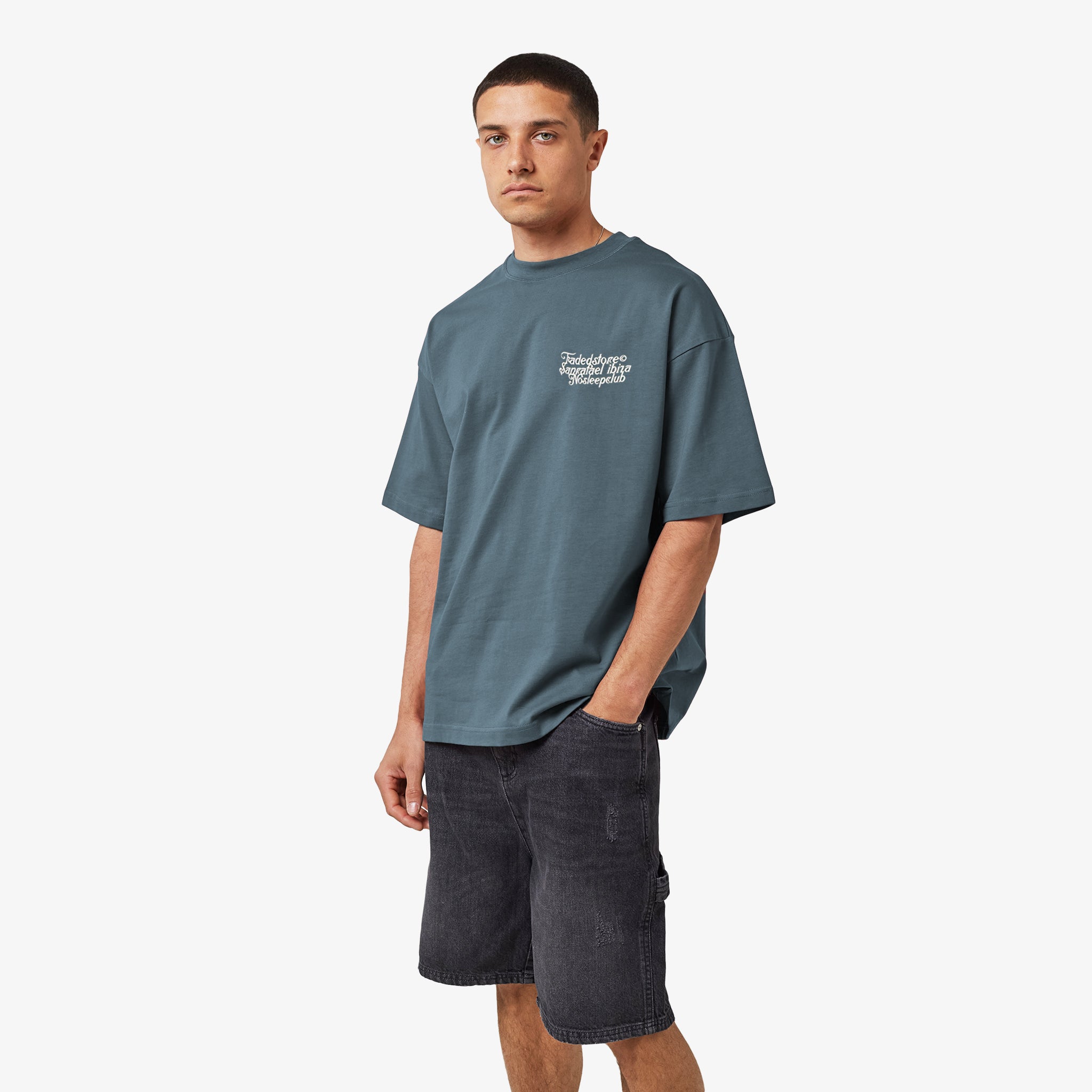 Introducing the NSC Face Tee in a basalt shade. This short-sleeved style features a relaxed silhouette provides an effortless fit, complemented by subtly refined self-turn cuffs that speak to considered design. An iconic "No Sleep Club" face graphic is boldly presented across the reverse, creating a distinctive visual statement. This piece lends itself well to layering beneath tracksuits or teamed with carpenter jeans or shorts.