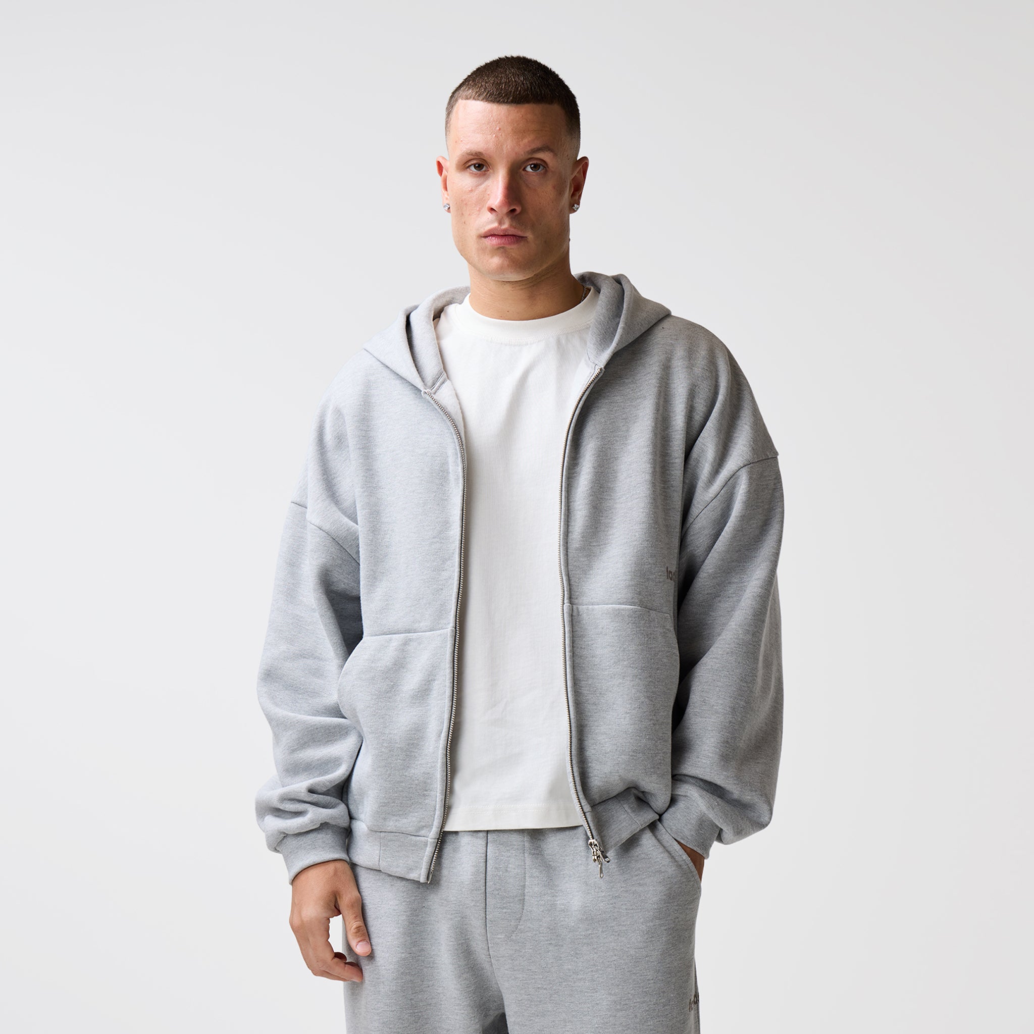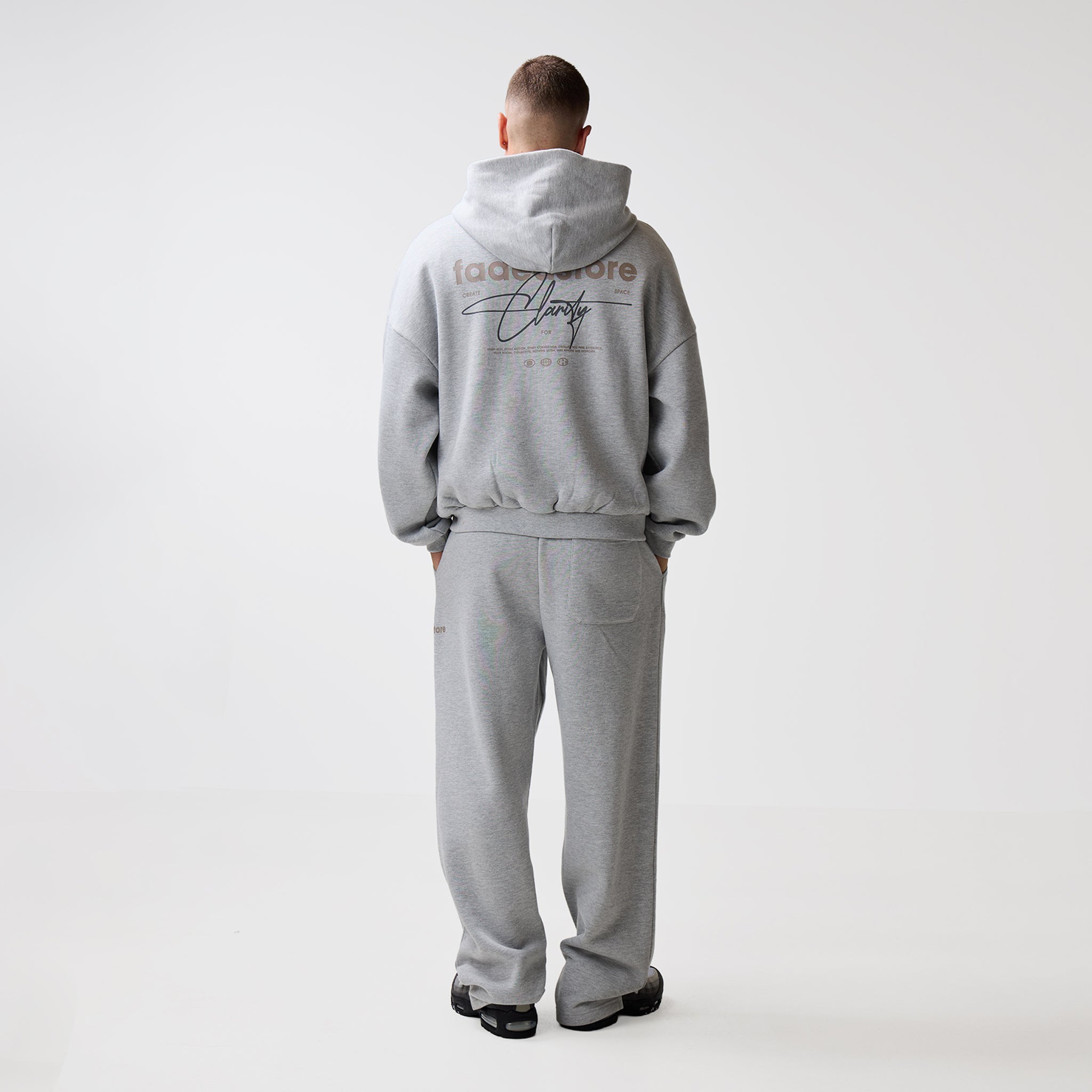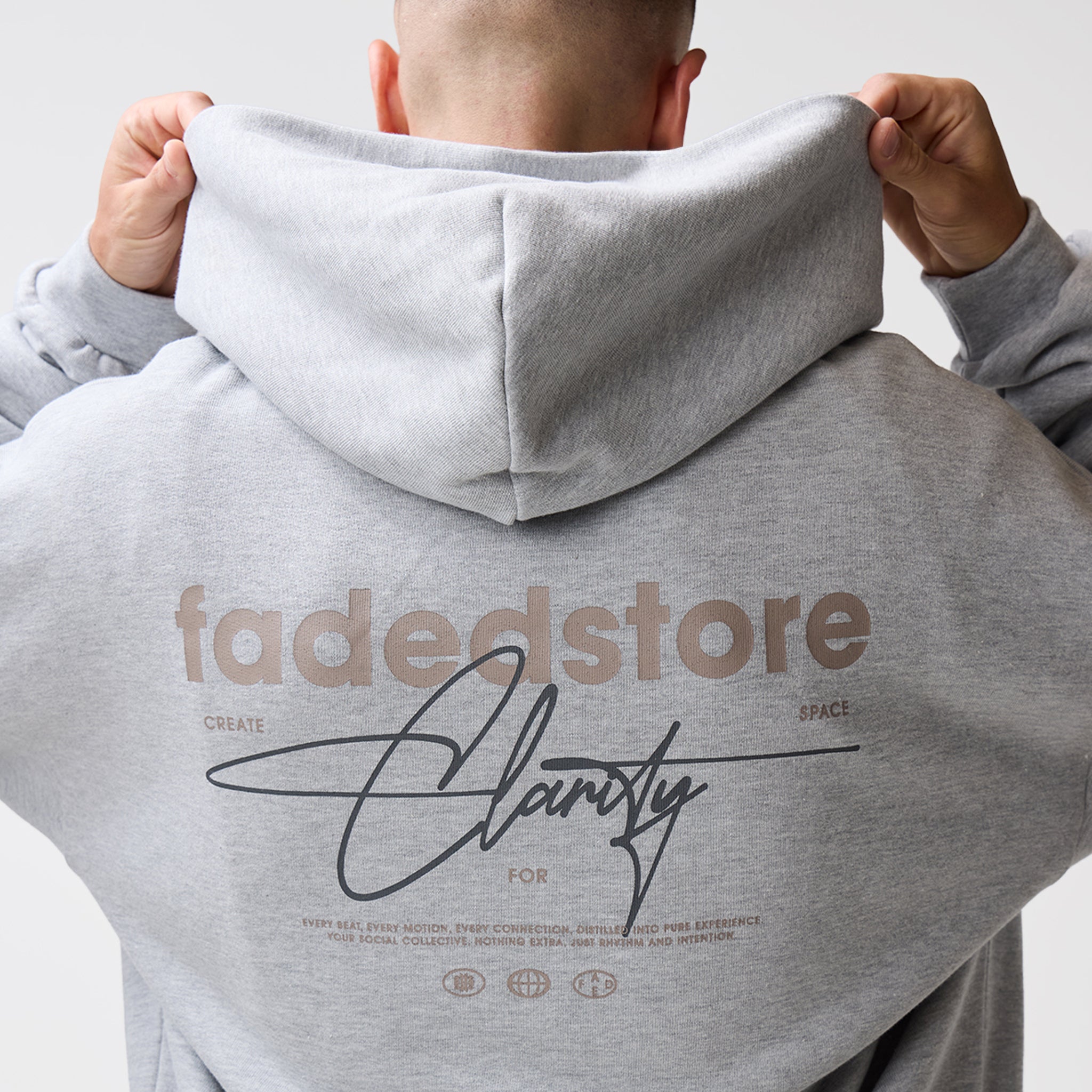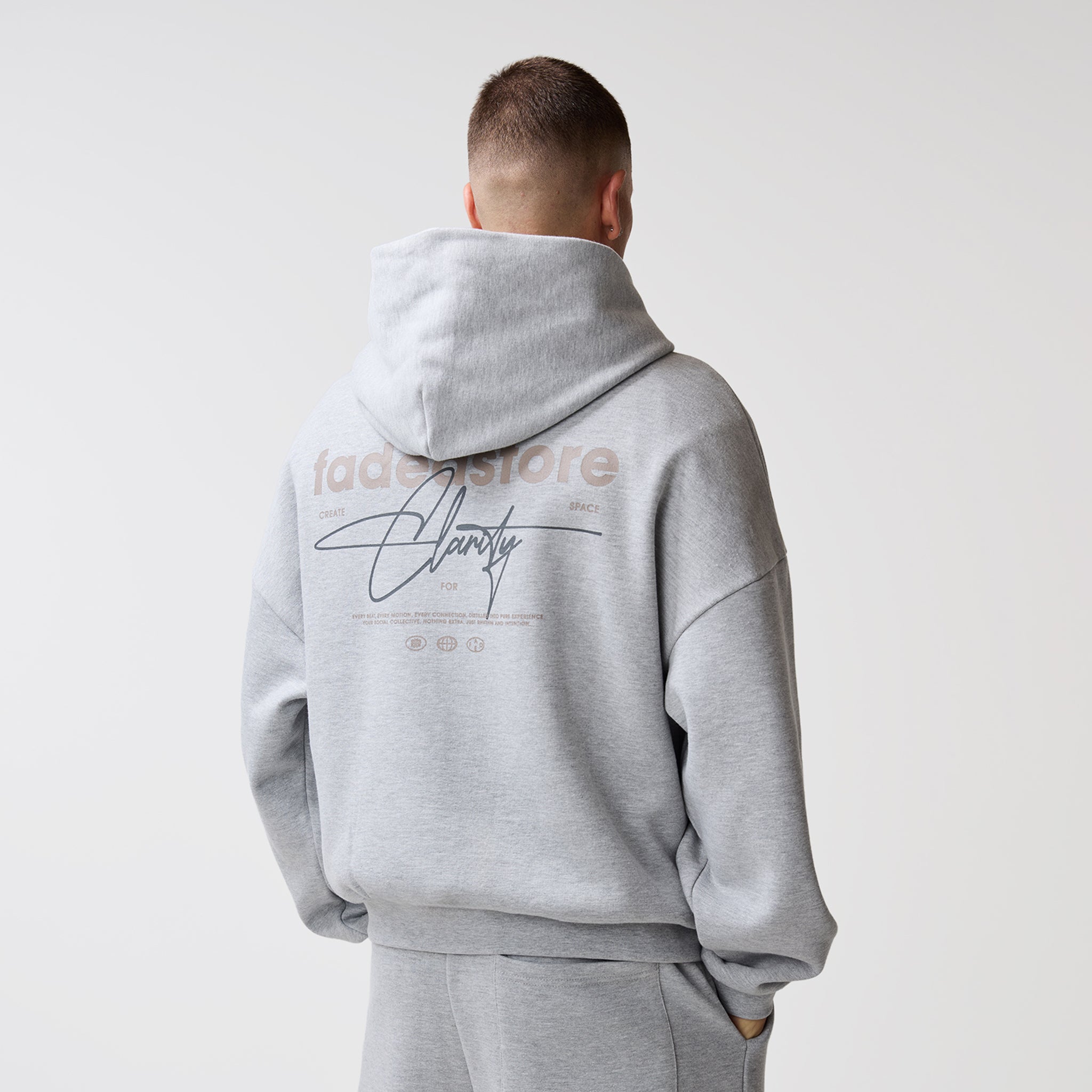 Discover the Space For Clarity Cropped Zip Hoodie in Grey Marl, a new season staple which delivers an effortlessly sharp aesthetic. Crafted an ultra-heavyweight cotton for a substantial, structured drape, this hoodie redefines streetwear essentials through expert construction. The silhouette is anchored by a double-headed silver centre front zip for versatile styling, complemented by set-in sleeves and heavy-duty ribbing at the cuffs and waistband to maintain a sharp, consistent fit. Every detail is considered, from the ergonomic dart at the centre back of the hood and the clean finish of the bound back neck tape to the self-fabric hood lining. Subtle branding via the FadedStore logo sits above a blind-stitched kangaroo pocket, while the rear features a high-impact logo and graphic that commands attention. This is a piece built to centre your look around, balancing high-end internal finishes with a streetwear aesthetic.