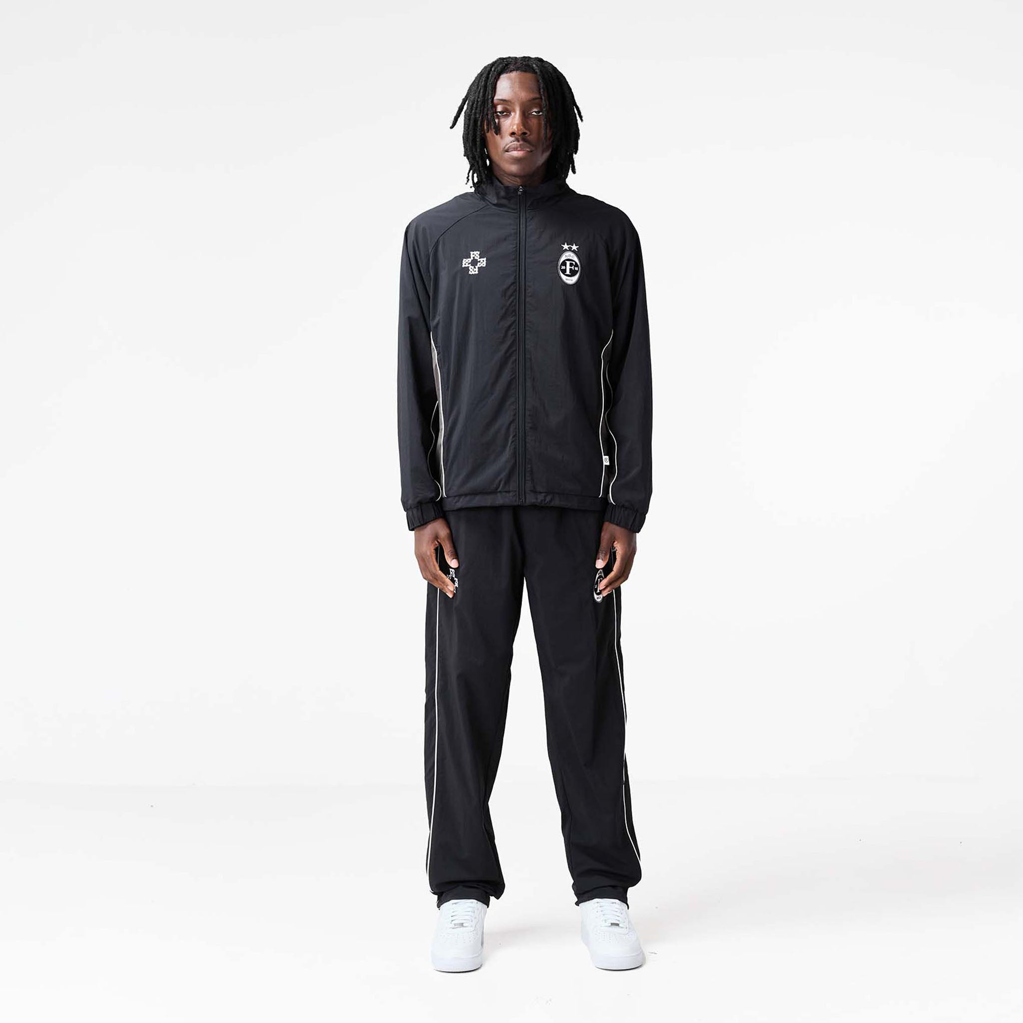 Experience ultimate comfort and sharp athletic style with the FadedStore Nylon Football Tracksuit in classic Black. This essential set is engineered for an effortless, relaxed fit and is perfect for training or casual wear. The Jacket features a stand-up collar, a smooth full-zip fastening, and secure zip side pockets for your valuables. It achieves a striking look through its raglan sleeves and contrast colour blocking with piping. The matching Nylon Football Joggers provide premium comfort with a flexible elasticated waistband and adjustable drawcord. Both the jacket and joggers are accented with an authentic FadedStore football crest and dynamic contrast piping, lending a heritage sporting aesthetic. Wear this full tracksuit to complete your athletic ensemble or mix the pieces into your everyday wardrobe.