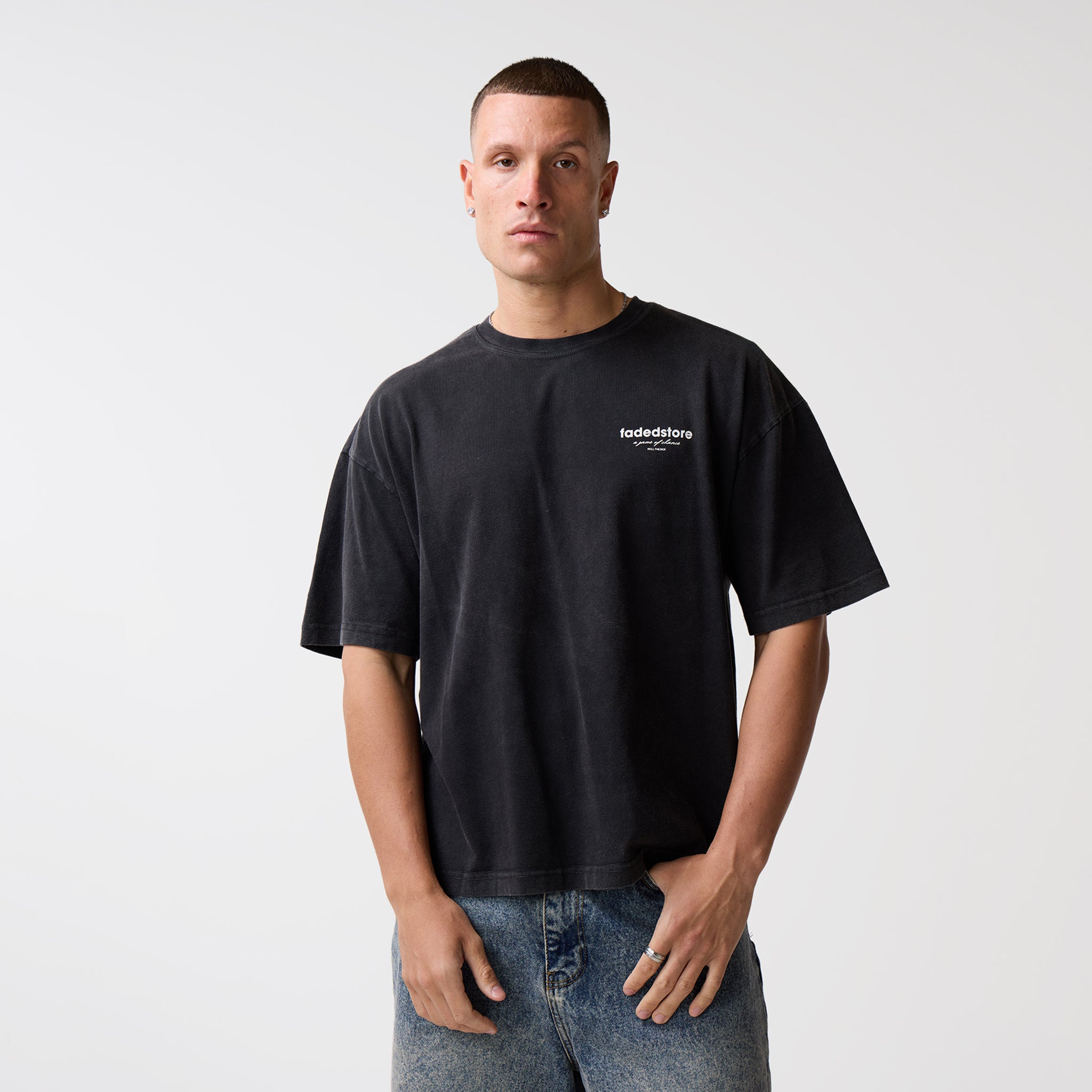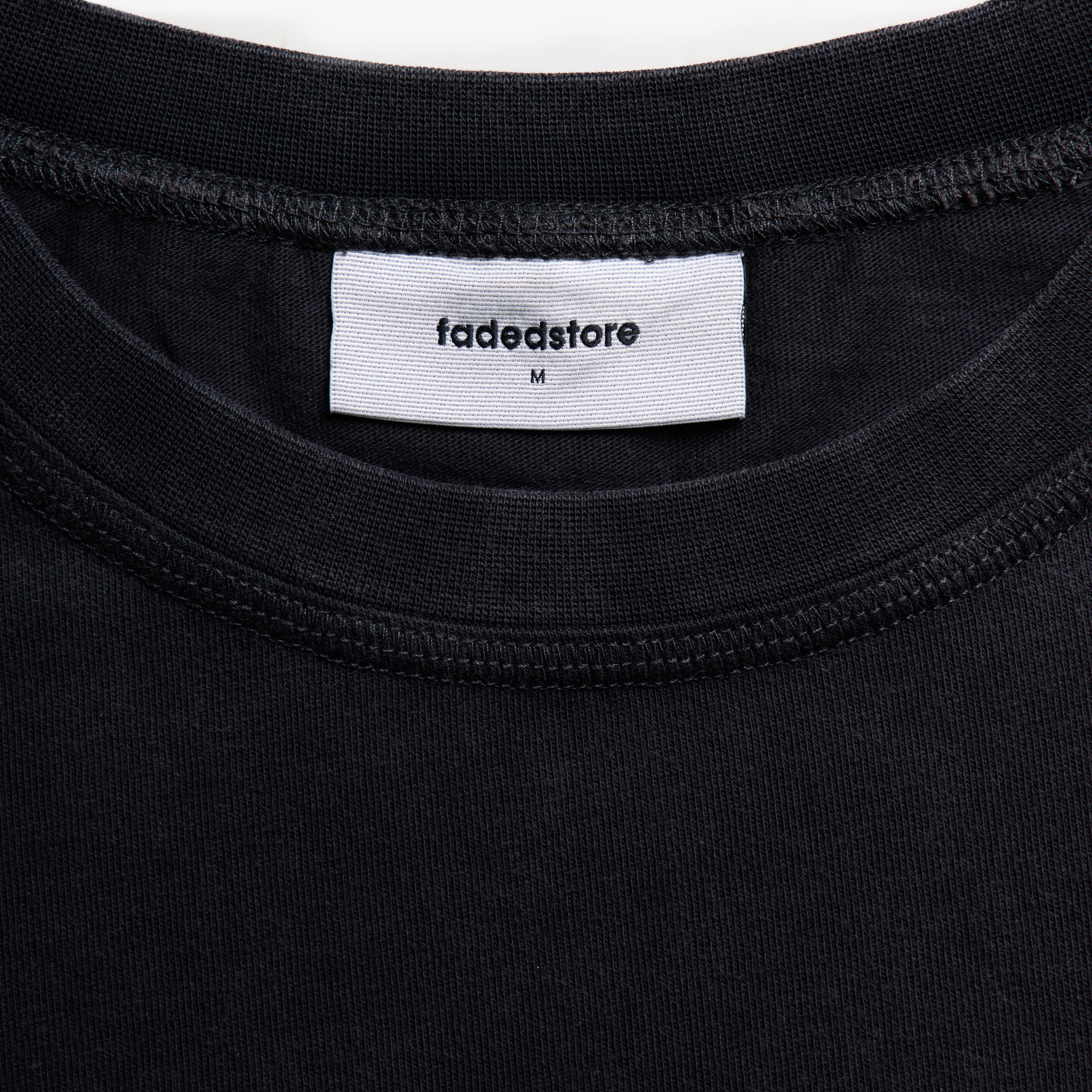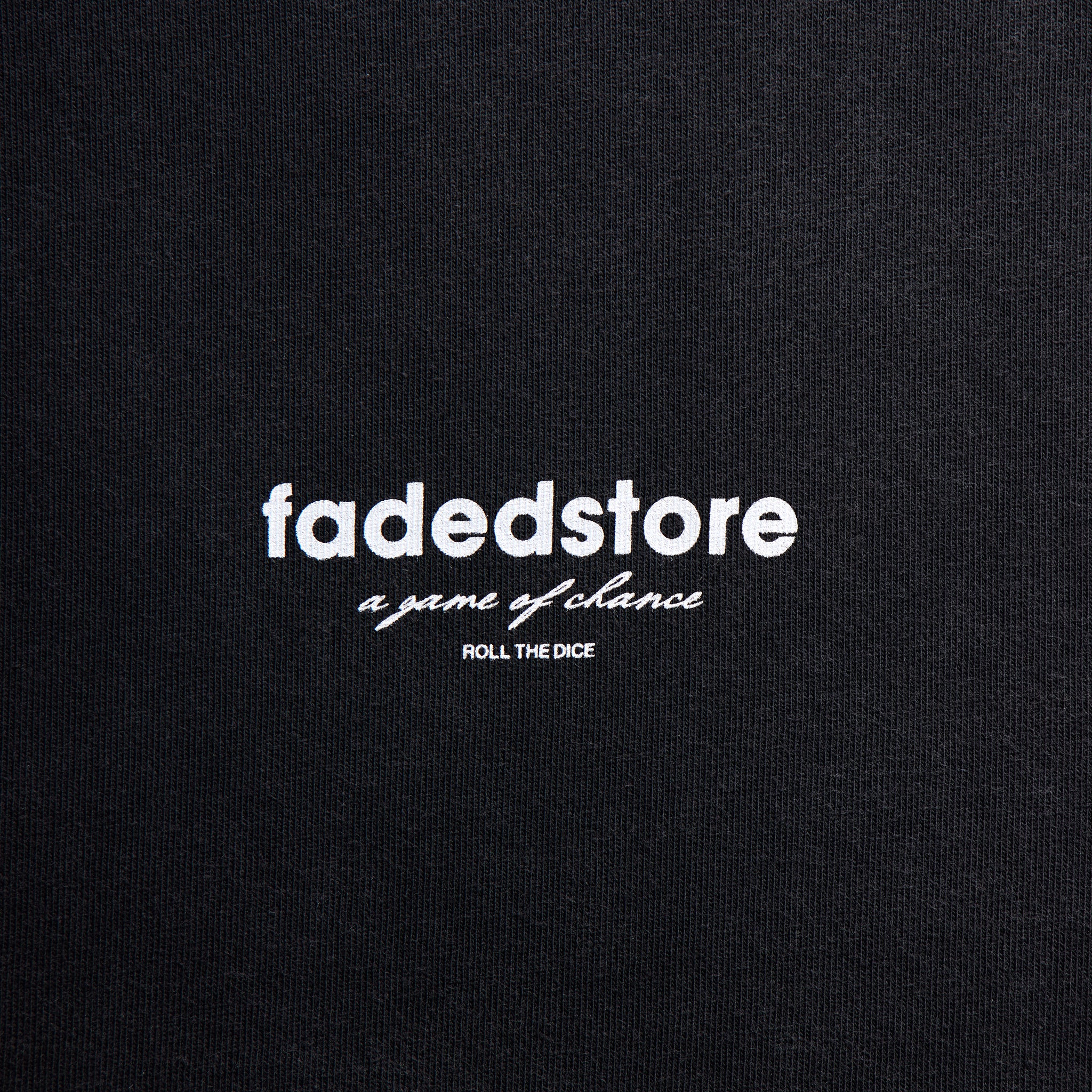 - fadedstore screen print logo on lower chest