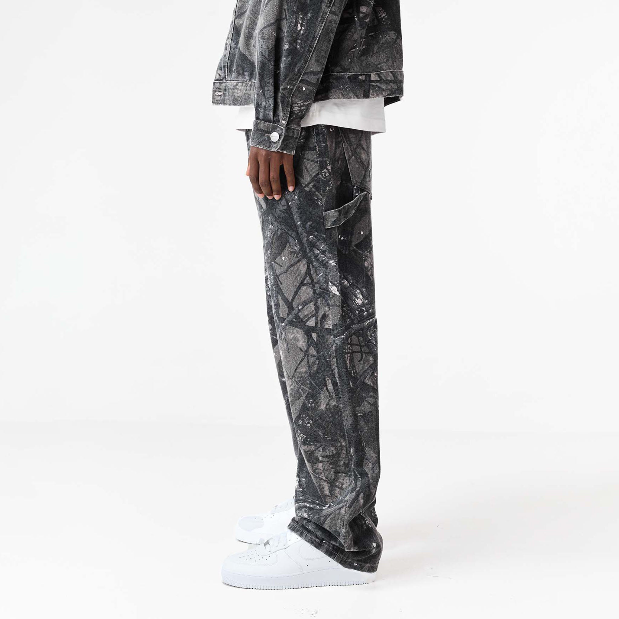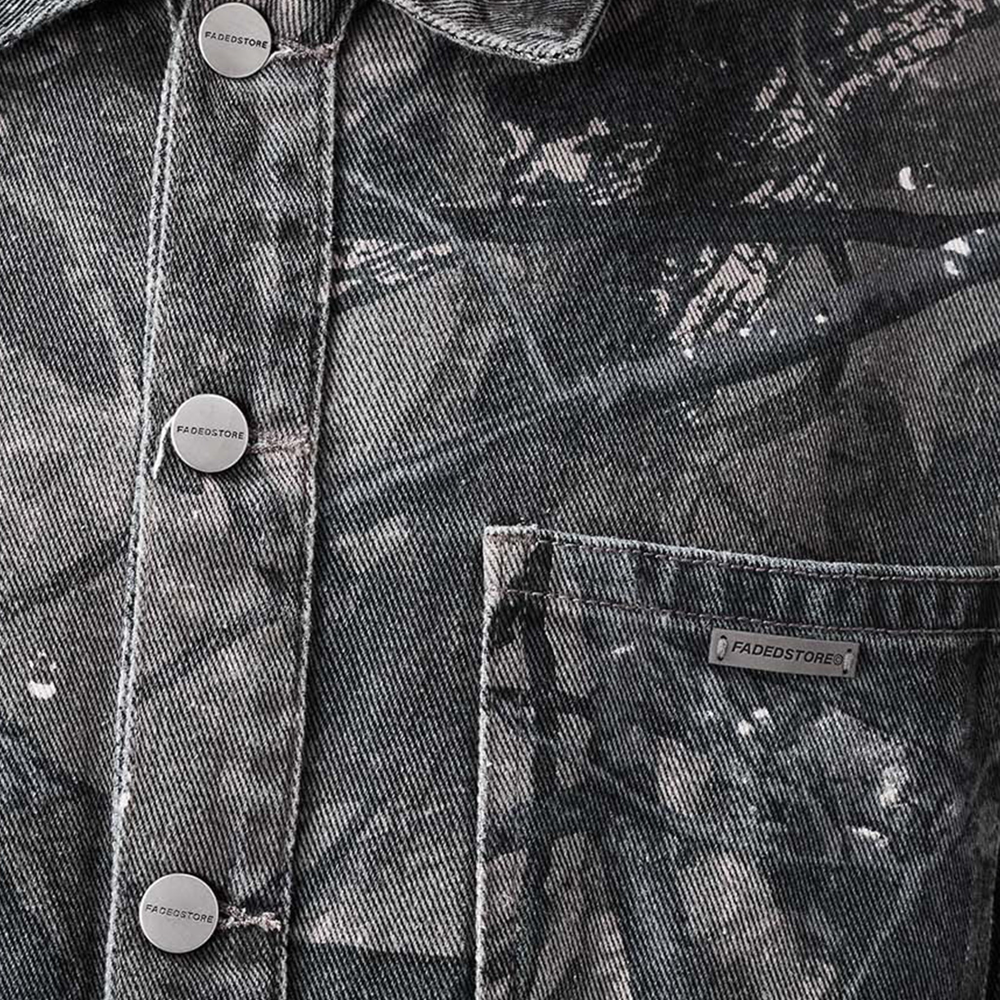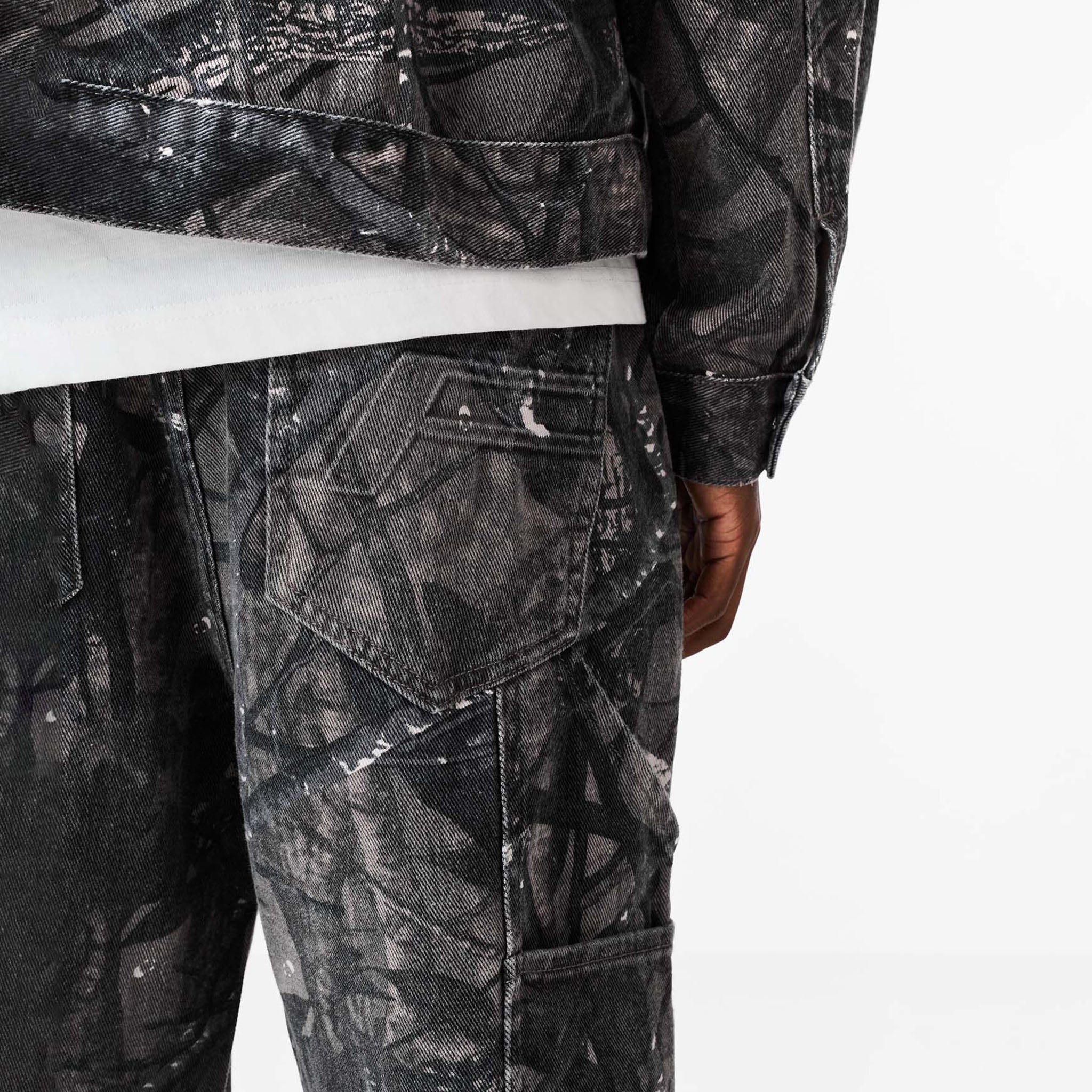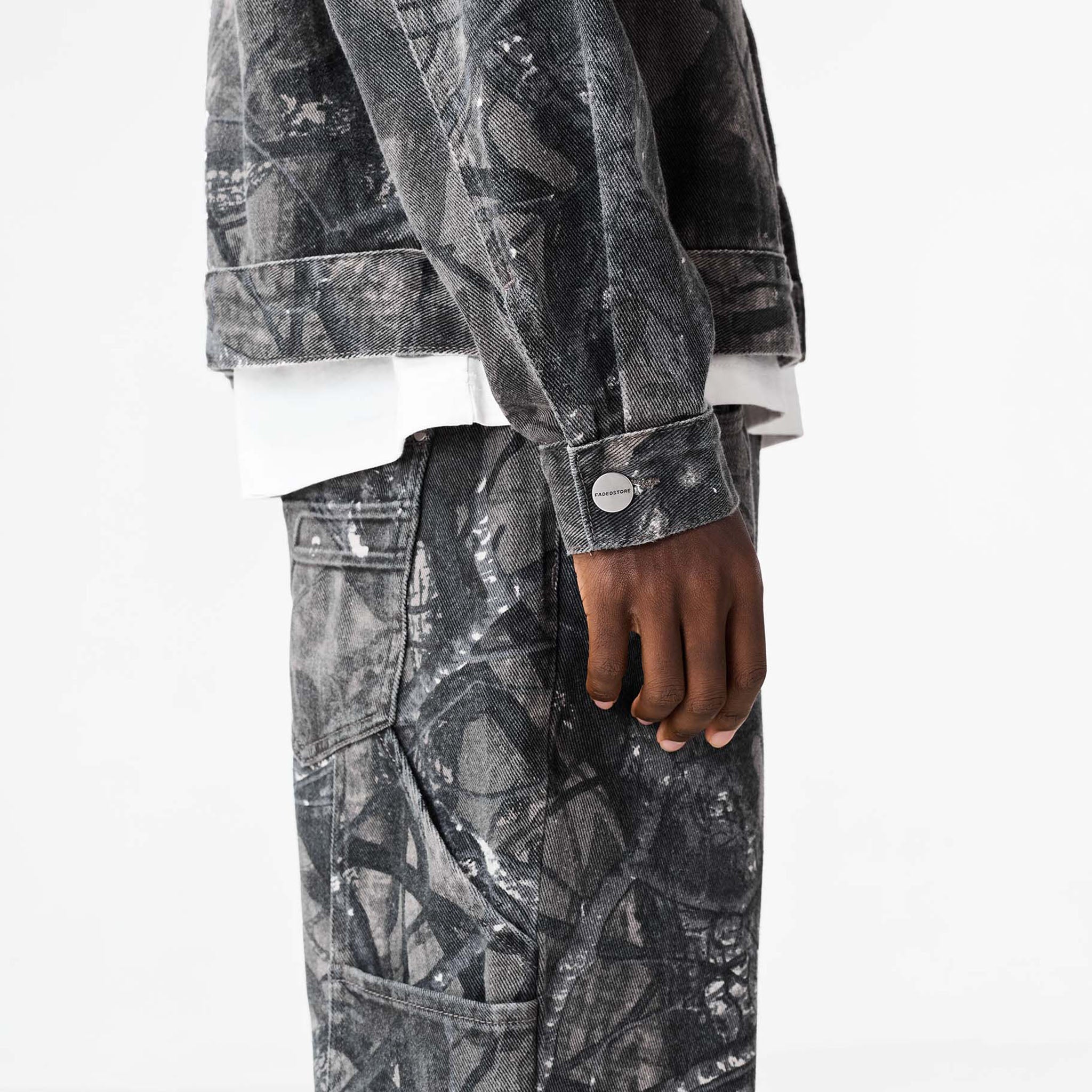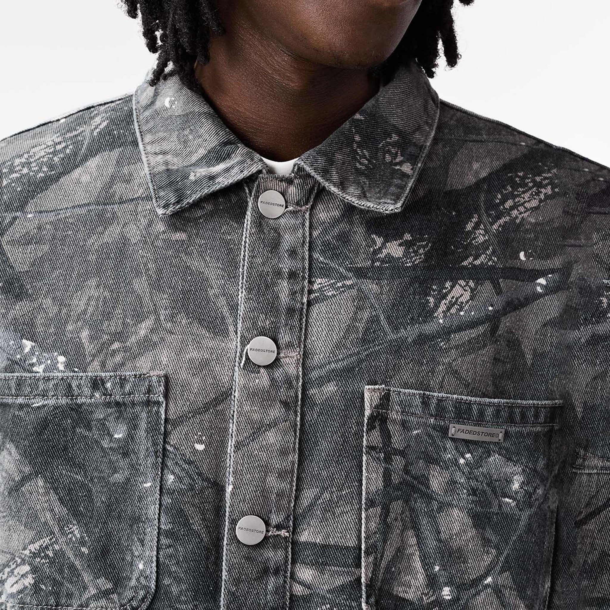 Make an undeniable statement with the Camo Print Twinset in signature Green Tree. This coordinated jacket and jeans set is meticulously designed to elevate your casual wardrobe. The Jacket features a smart collar, a timeless button-down fastening, and practical details like two chest pockets accented by a Fadedstore leather tab and authentic rivets. Complementing this, the Jeans offer a comfortable fit with belt loops, a branded button-zip fly, and a clean self-turn hem. Utility is key in both pieces: the jacket includes convenient front welt pockets, while the jeans boast front pockets with branded rivets, a unique embossed coin pocket, and rear carpenter pocket detail. Signature branding, including the Fadedstore leather patch and subtle embossed 'F' logos, ties this powerful, utility-driven twinset together.