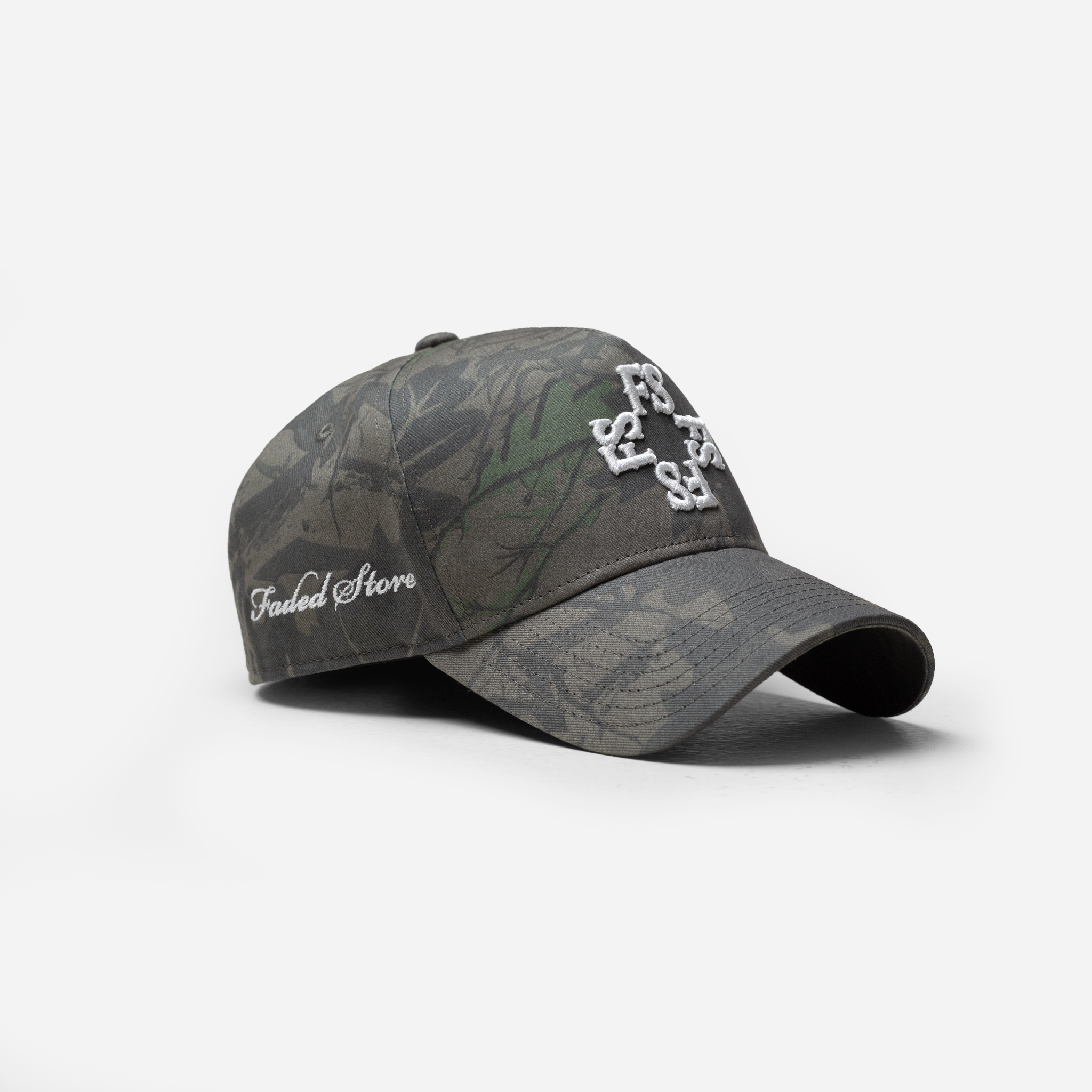 Make a statement with the FadedStore Monogram Cap in a striking Real Tree print. This season's essential piece, distinguished by its bold, iconic front monogram logo. Designed with a classic curved peak and built tough with durable single stitching. It keeps you cool with ventilation eyelets and features a convenient snapback adjuster for a custom feel. Finished with premium details, including the FadedStore woven label and unique side embroidery, this camo cap is truly one-of-a-kind.