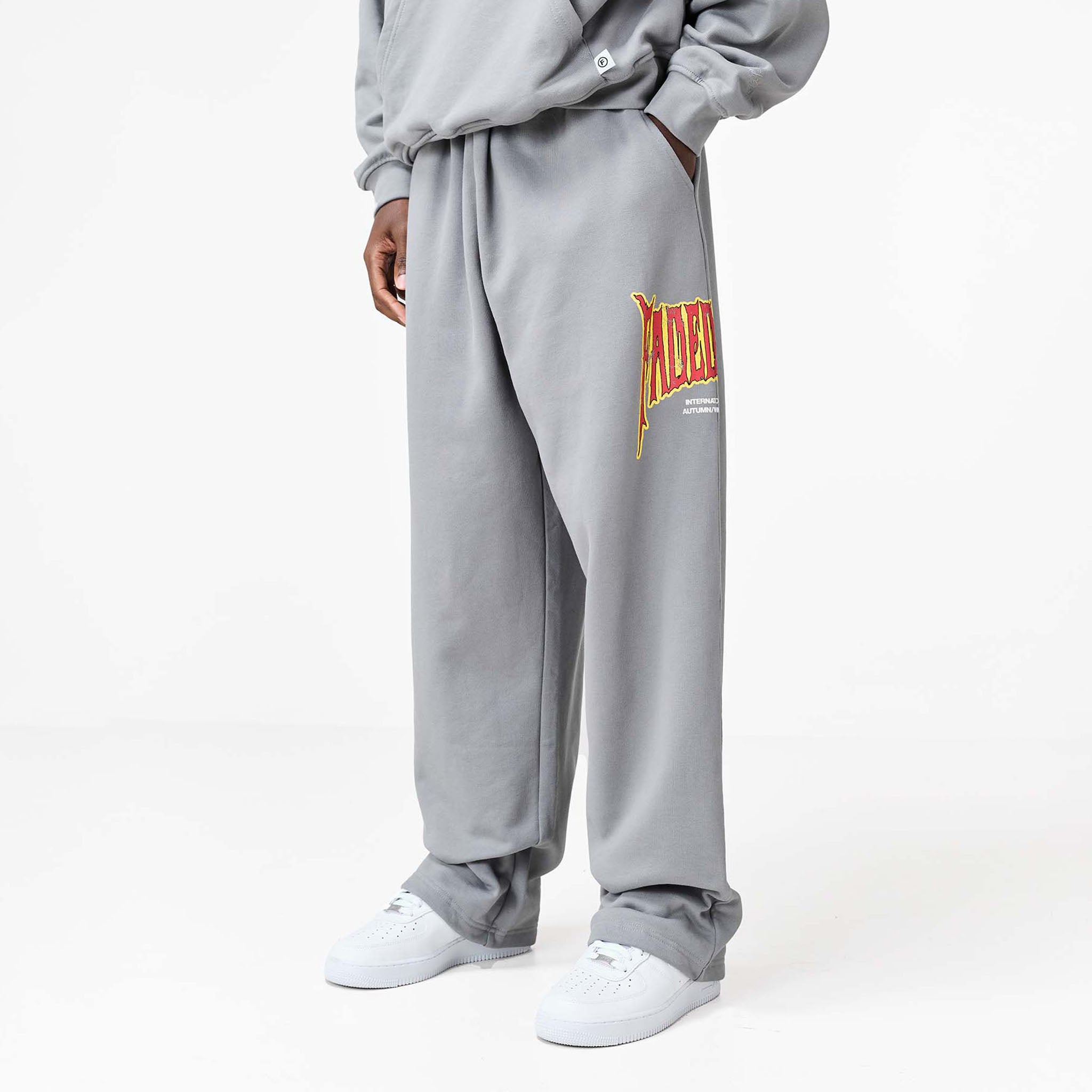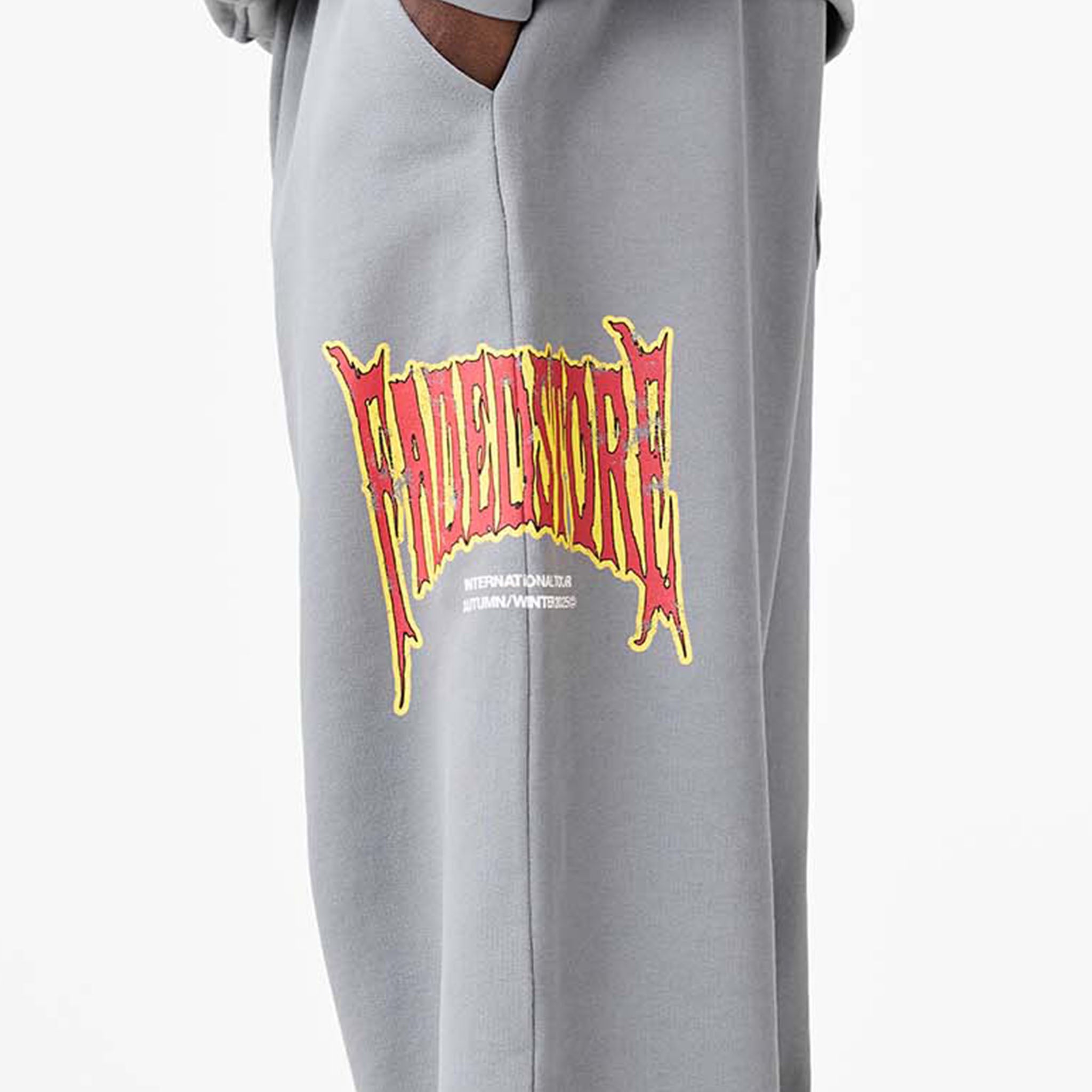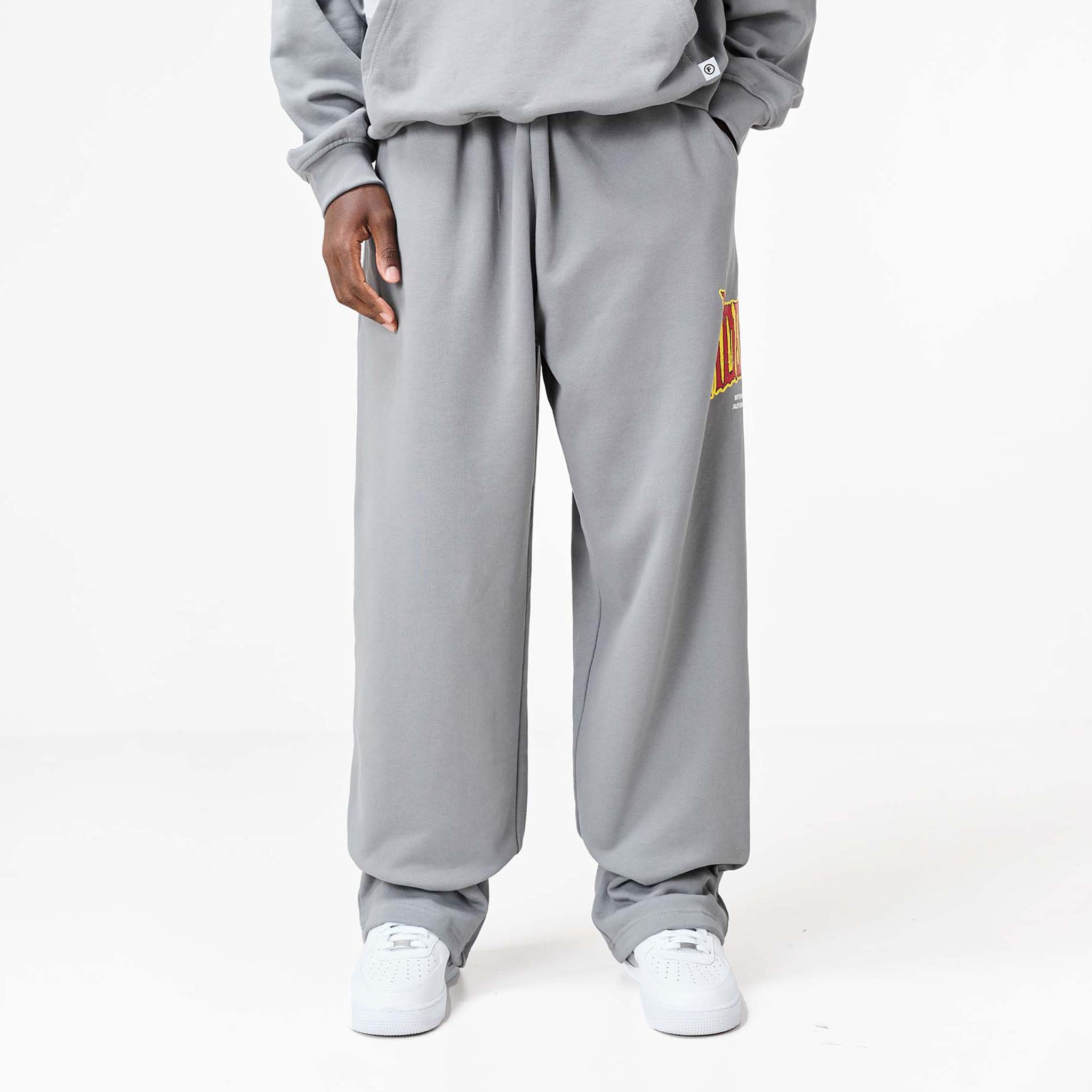 Discover the iconic new season FadedStore Blackletter Open Hem Joggers in a versatile mid grey shade. These joggers are meticulously designed for a modern, relaxed fit, featuring a clean open hem for a laid-back silhouette. Features internal poly drawcords, neatly integrated within the refined cut-and-sew waistband. Functionality is key with curved side pockets for easy access to your essentials, plus convenient rear pockets. A bold FadedStore 'Blackletter 'graphic logo makes a statement on the side seam, while our signature 'F' logo label subtly accents the rear pocket, underscoring Faded quality. Crafted from substantial 422 GSM cotton, these joggers promise exceptional softness, durability, and lasting comfort for your relaxed rotation. Team with the matching hoodie for the complete look.