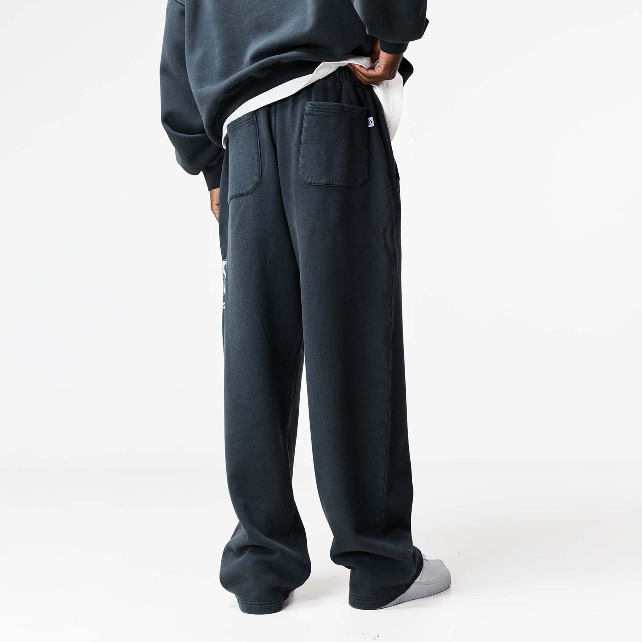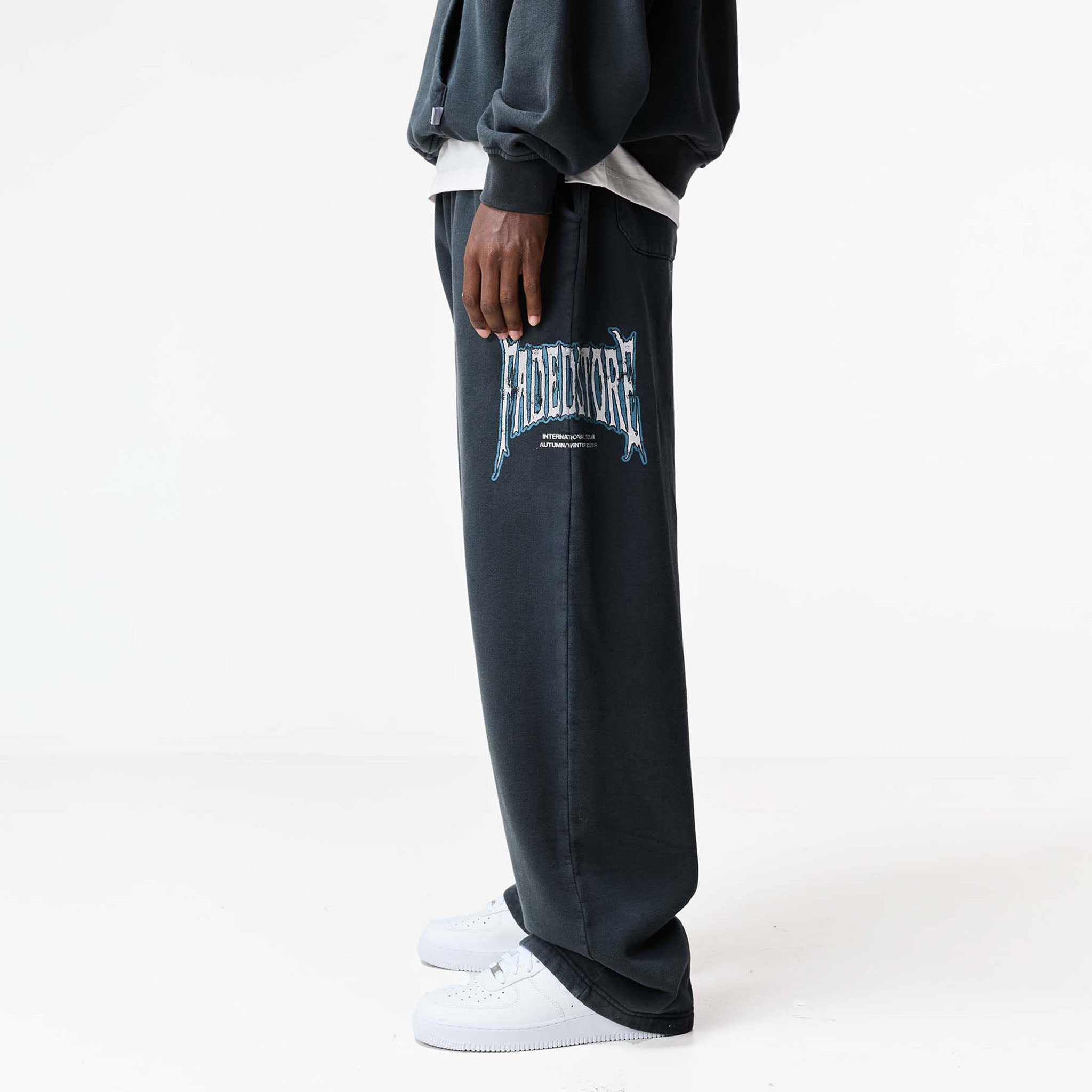 Experience elevated comfort with our FadedStore Blackletter Open Hem Joggers in washed black. These joggers are meticulously designed for a modern, relaxed fit, featuring a clean open hem for a laid-back silhouette. Features internal poly drawcords, neatly integrated within the refined cut-and-sew waistband. Functionality is key with curved side pockets for easy access to your essentials, plus convenient rear pockets. A bold FadedStore 'Blackletter'graphic logo makes a statement on the side seam, while our signature 'F' logo label subtly accents the rear pocket, underscoring Faded quality. Crafted from substantial 422 GSM cotton, these joggers promise exceptional softness, durability, and lasting comfort for your relaxed rotation. Team with the matching hoodie for the complete look.