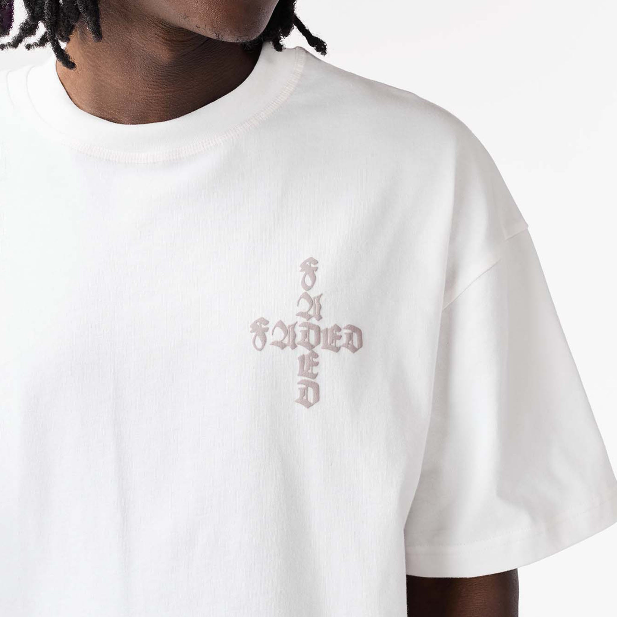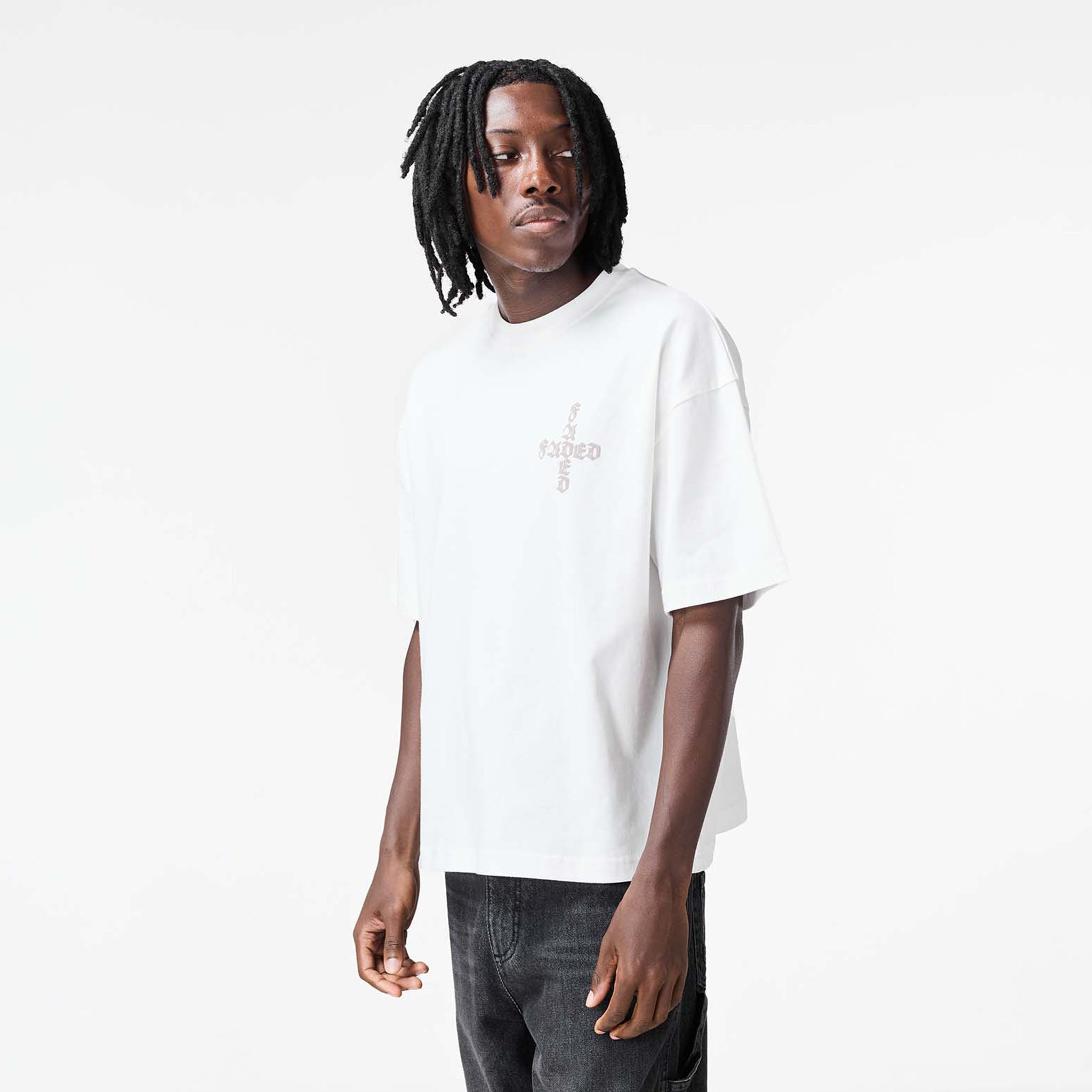 Discover the new season version of our signature Gothic Graphic T-Shirt in off white. This tee is an ode to Fadedstore unique design, featuring a comfortable crew neck collar and a refined flatlock detail neckline. Its short-sleeved construction ensures effortless comfort, while a striking gothic inspired chest logo and a bold printed logo design to the rear make an undeniable statement of our iconic style. Finished with self-turn hem and cuff and our signature 'F' logo woven label at the hem, this tee is a must-have for elevating your streetwear wardrobe.