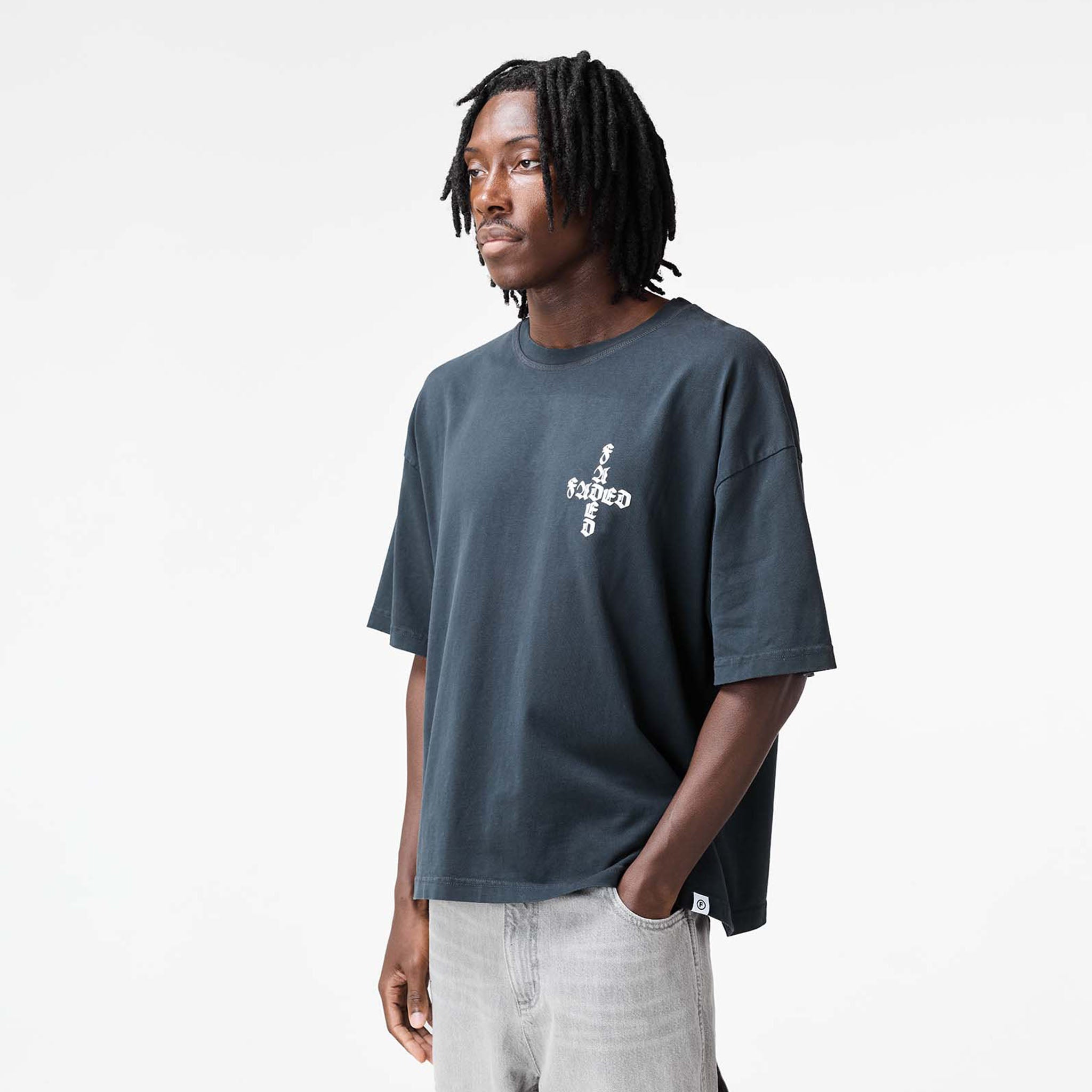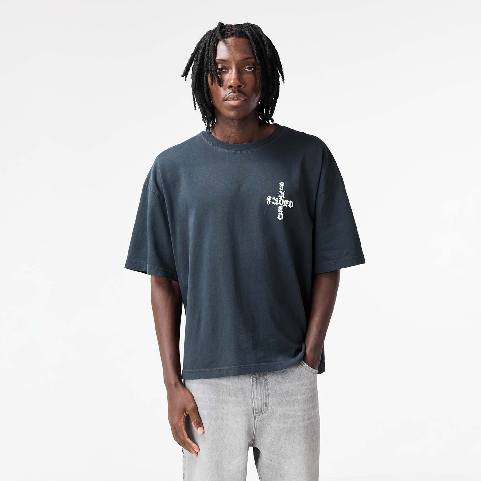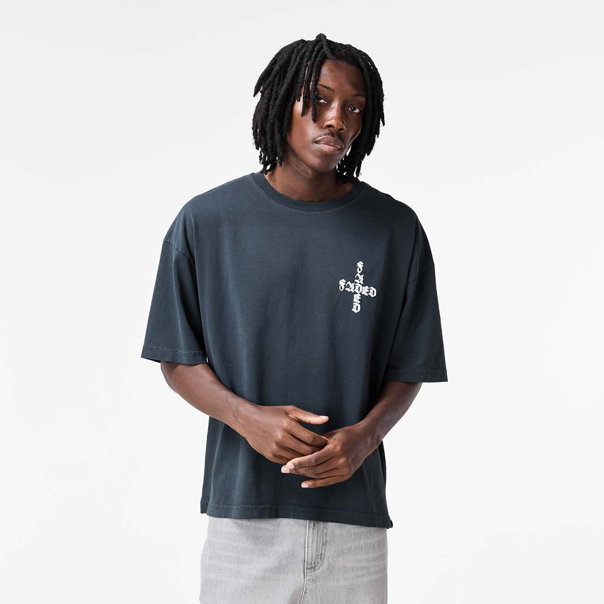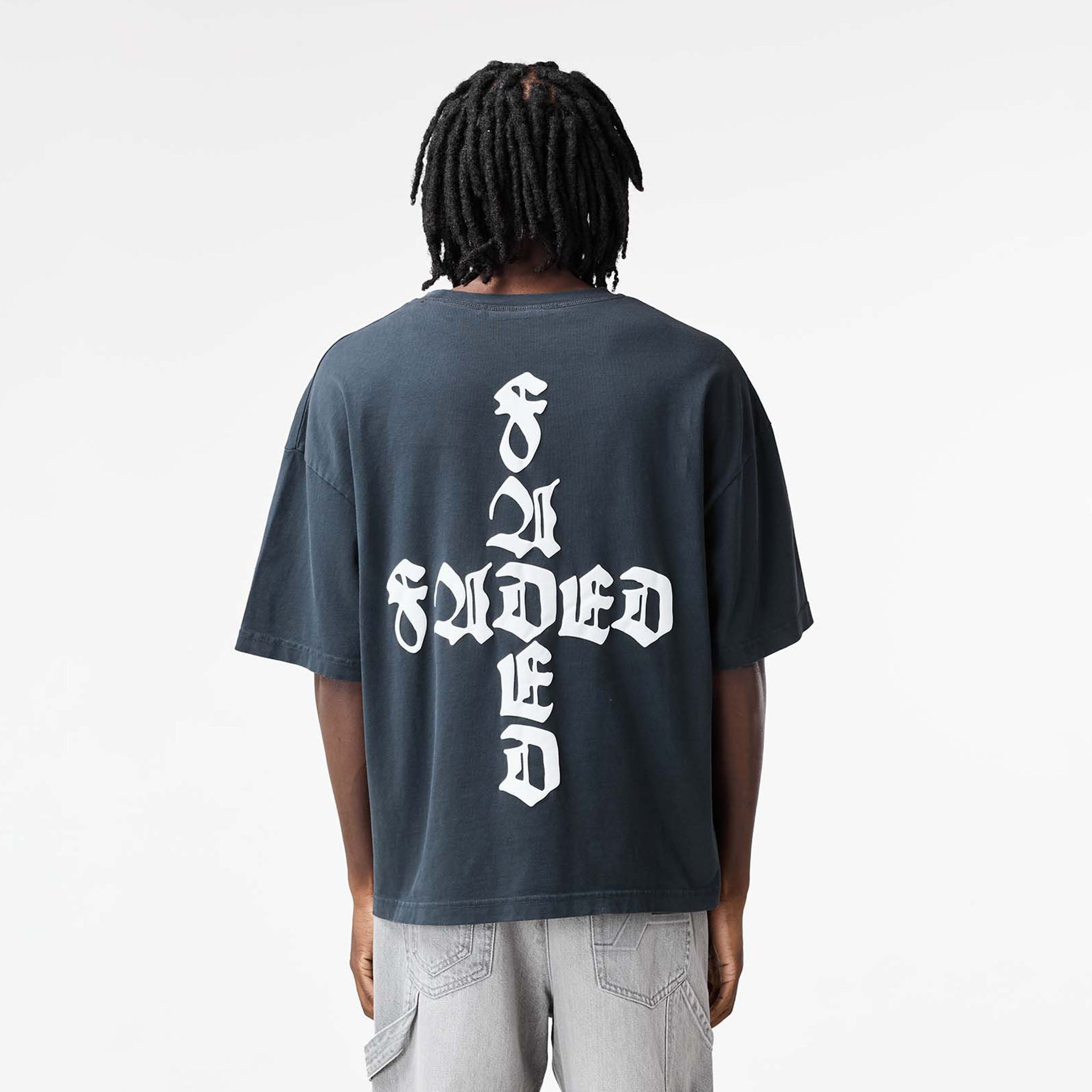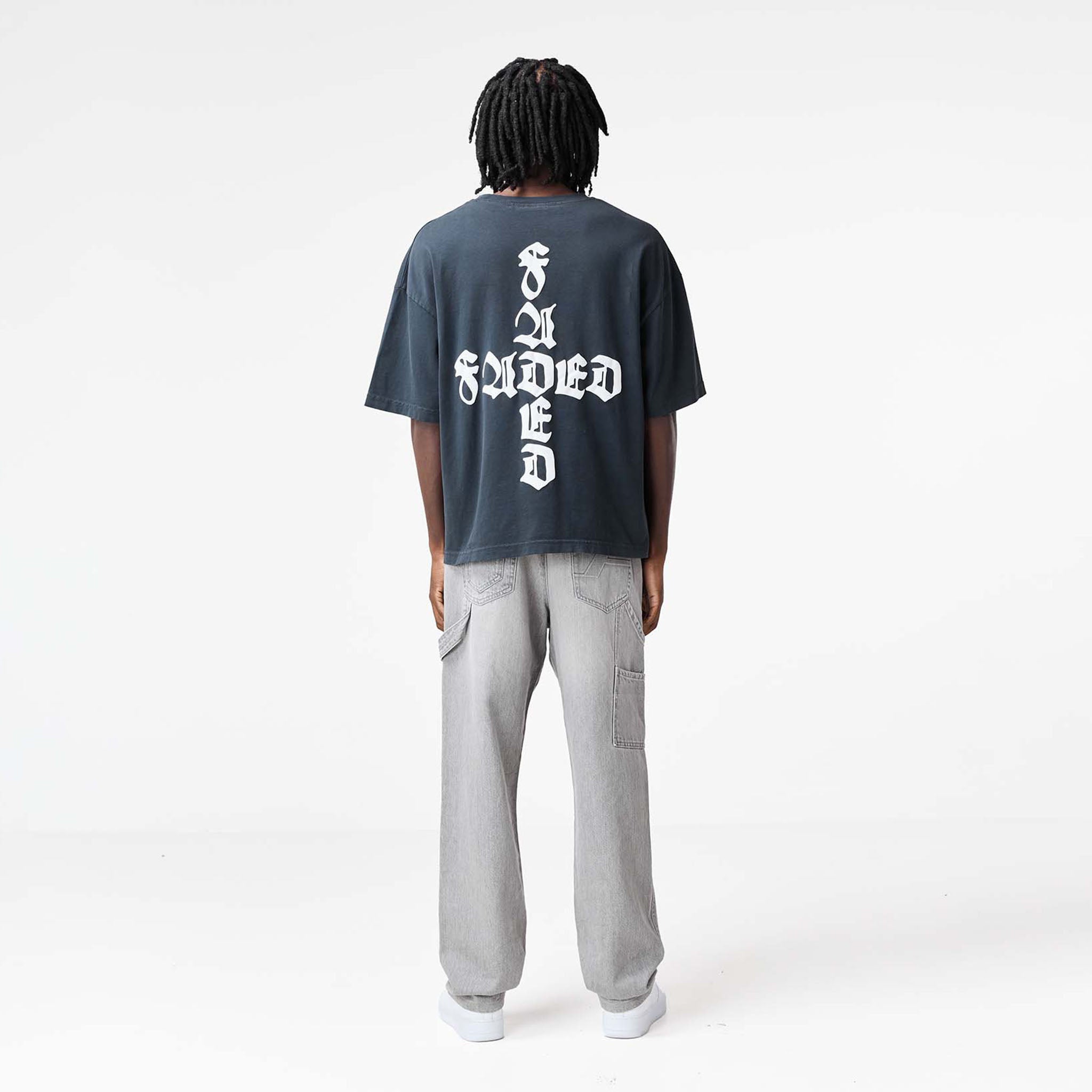 Introducing the new season version of our signature Gothic Graphic T-Shirt in washed black. This tee is an ode to Fadedstore's unique design, featuring a comfortable crew neck collar and a refined flatlock detail neckline. Its short-sleeved construction ensures effortless comfort, while a striking gothic-inspired chest logo and a bold printed logo design to the rear make an undeniable statement of our iconic style. Finished with a clean self-turn hem and cuff and our signature 'F' logo woven label at the hem, this tee is a must-have for elevating your streetwear wardrobe.