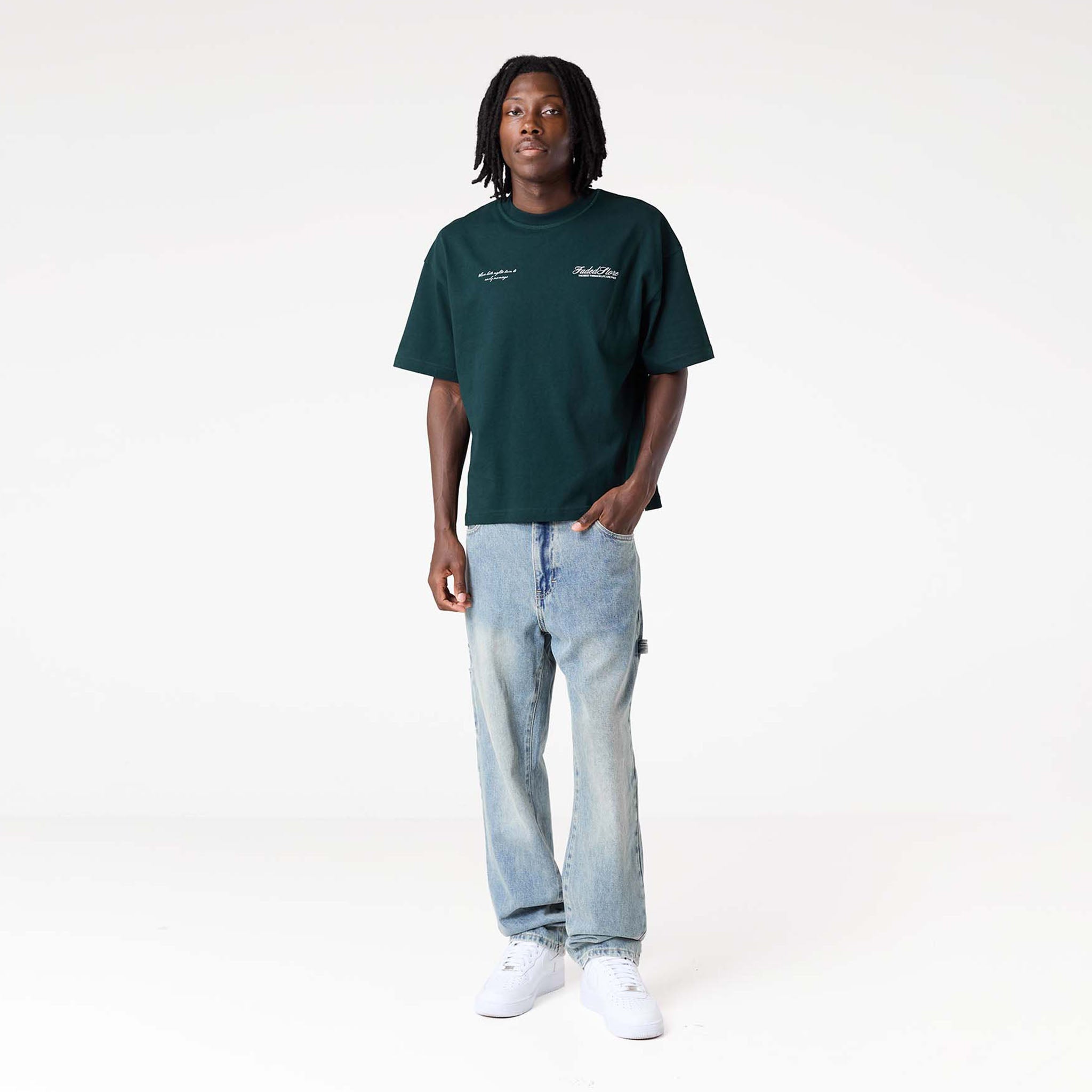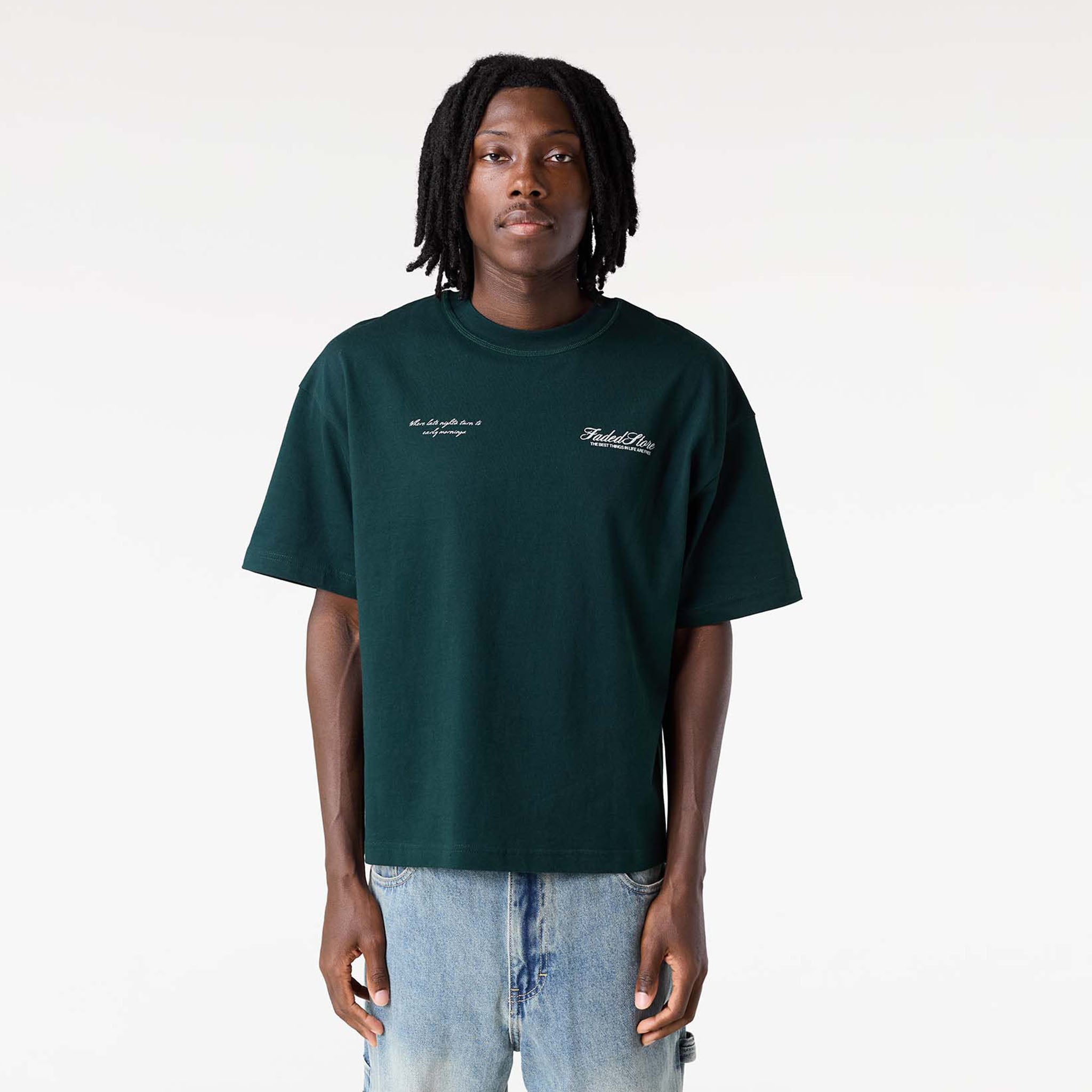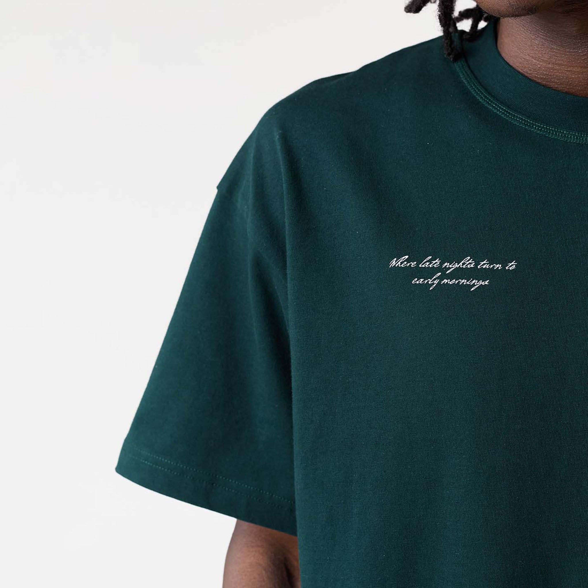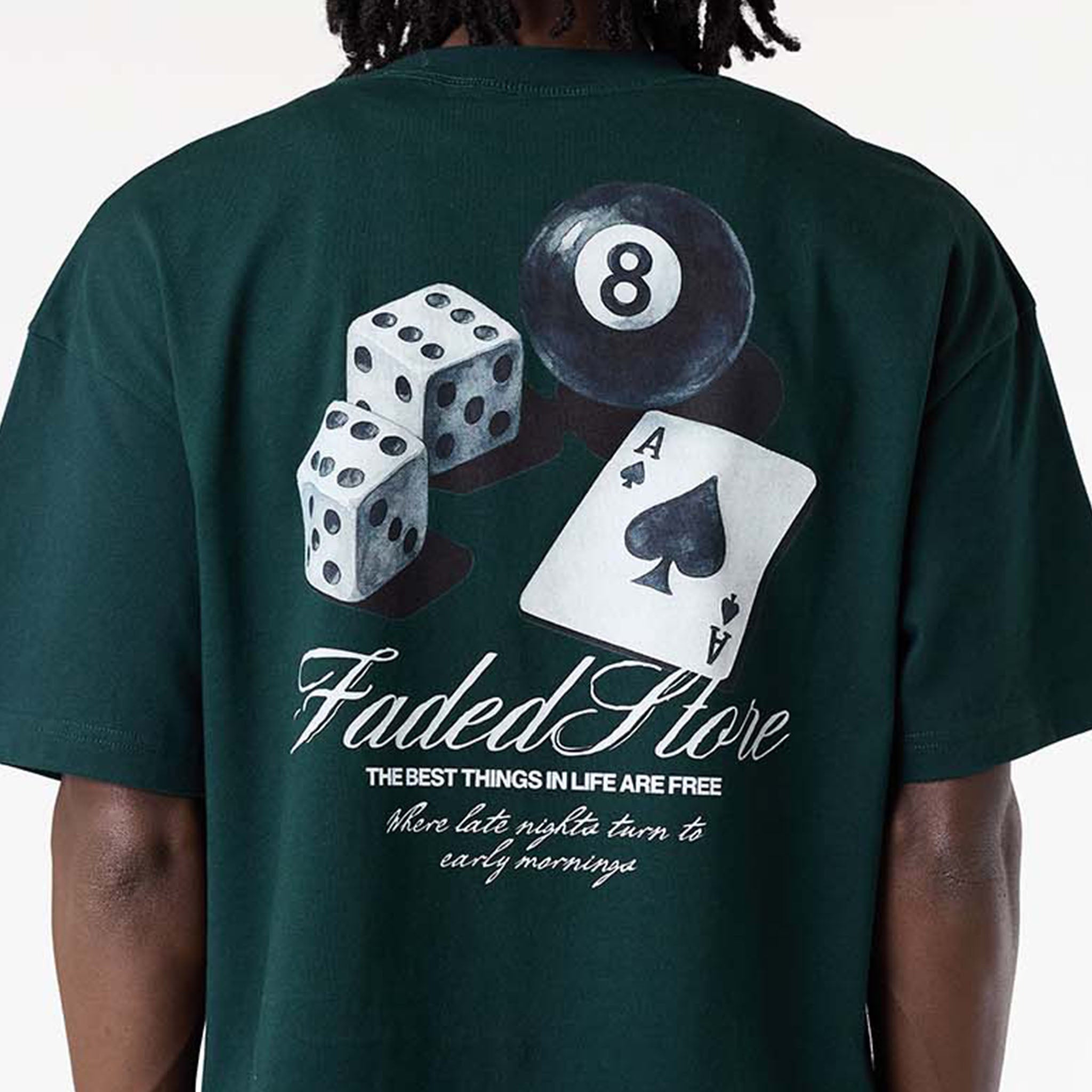 Level up your style with the new season Late Nights Graphic T-Shirt in forest green. This tee features a classic crew neck collar with flatlock detail neckline for a subtle, refined edge. Designed with short sleeves for effortless comfort, it boasts a striking chest logo and coordinating chest text print for a bold front statement. The rear throws down a winning hand with a dynamic poker inspired logo and printed design, making it clear you're all about the game. Finished with a clean self-turn hem and cuff, and our signature 'F' logo woven label at the hem, this tee is a guaranteed essential for your wardrobe.
