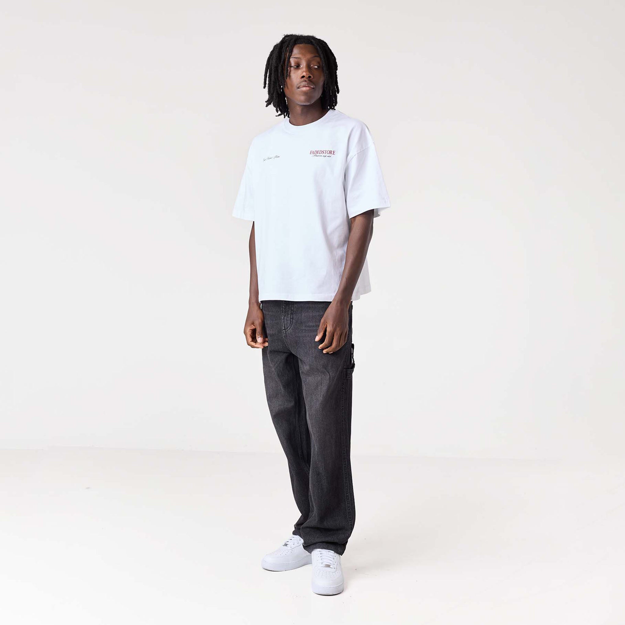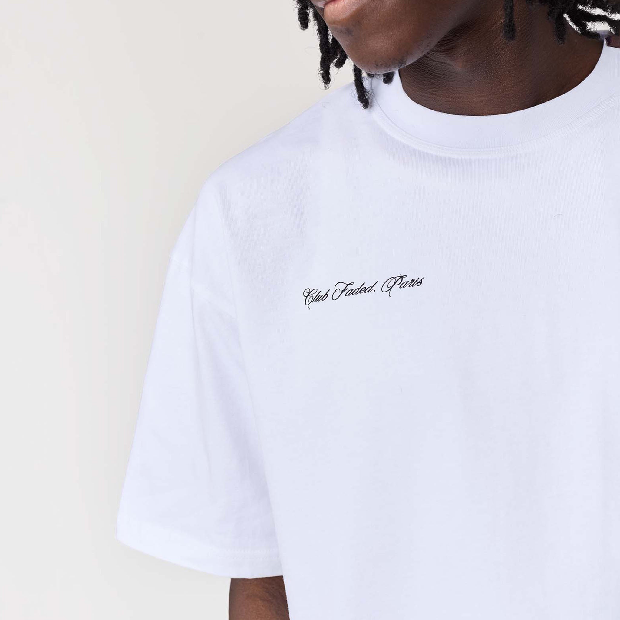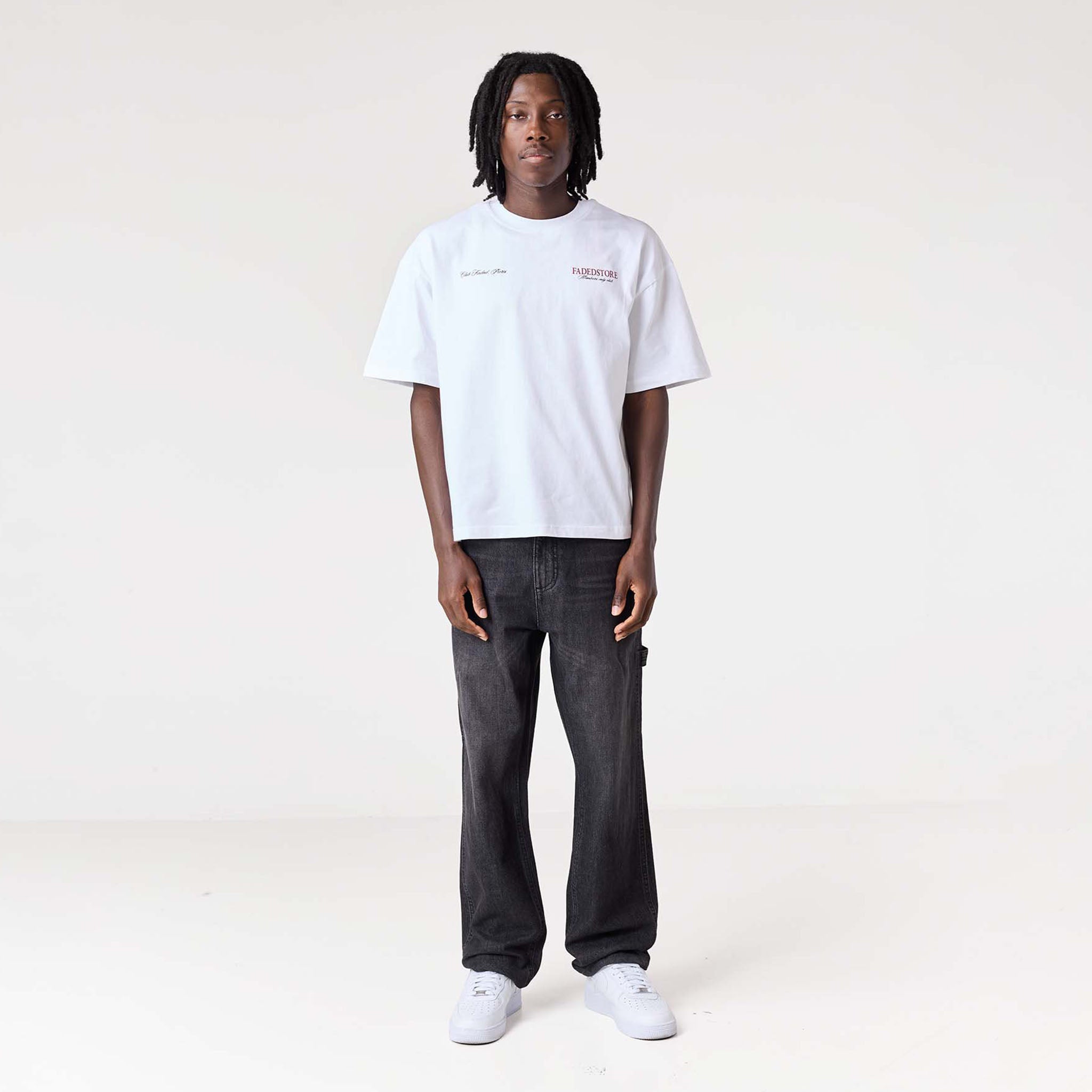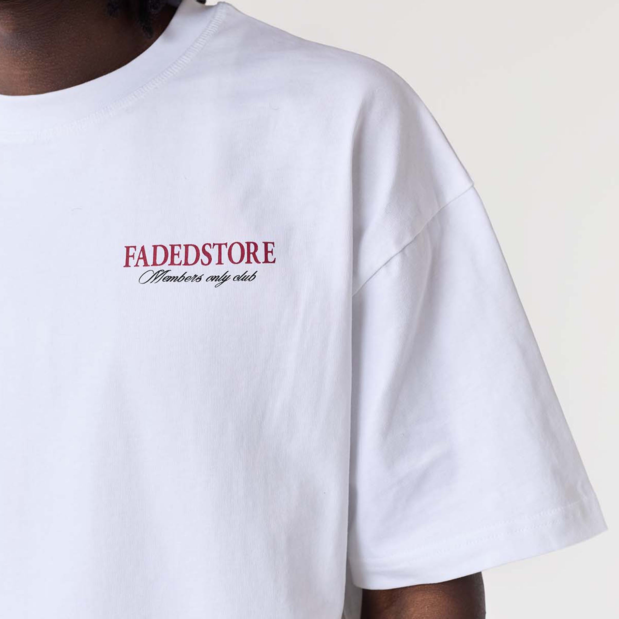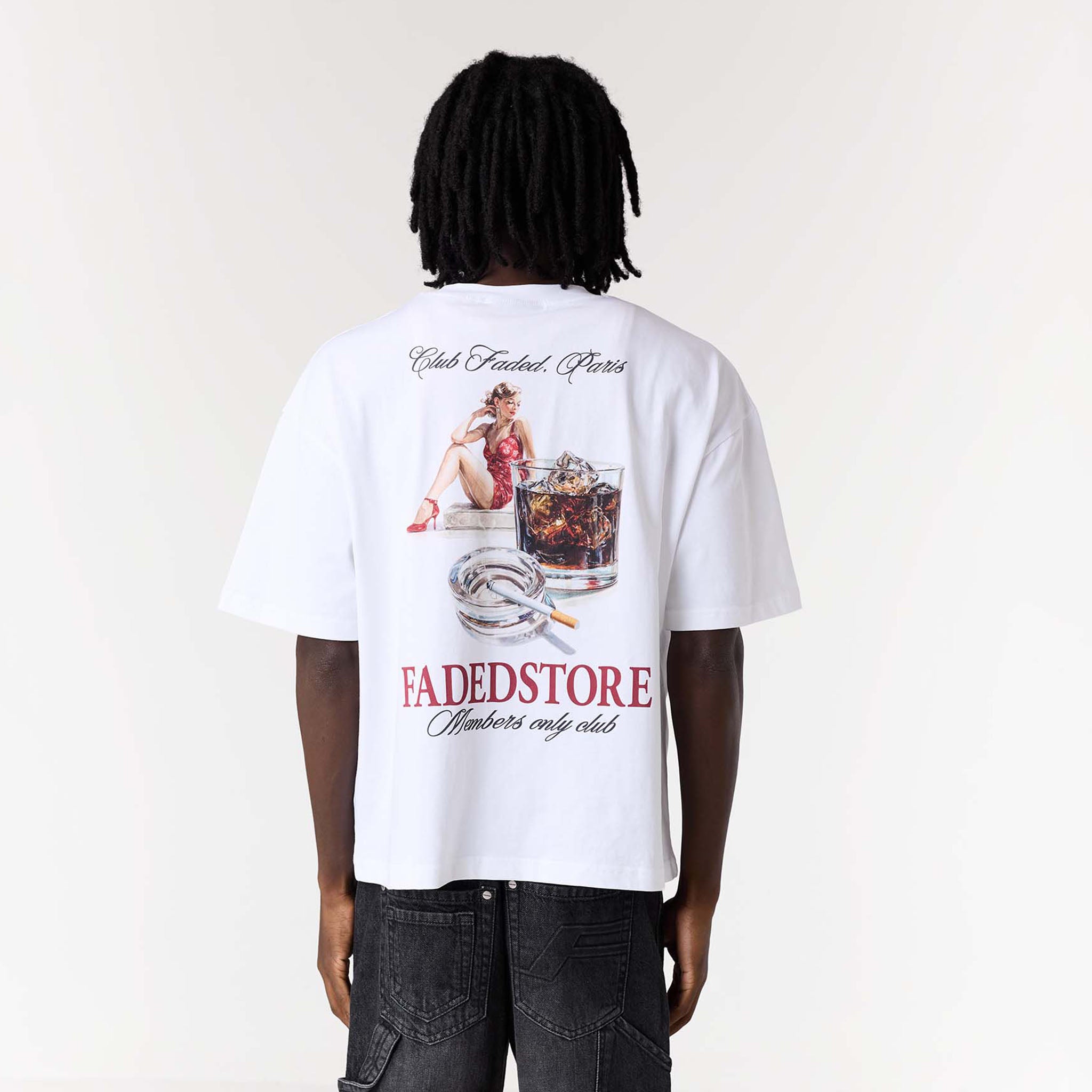 Experience refined style with the crisp white Members Club Tee. This top captures the essence of a vintage members' lounge, designed for those who appreciate quality. A detailed print on the reverse features a whisky glass and a classic ashtray, evoking a sense of nostalgic luxury. On the chest, a clean logo provides a minimalist touch. Sharp details like the self-turn finishing on the cuffs and hem, along with a discreet 'F' logo label, showcase its premium finish. This shirt seamlessly blends old-world charm with a fresh street aesthetic. It's the ideal match for your go-to carpenter jeans, creating a look that's both effortless and refined.