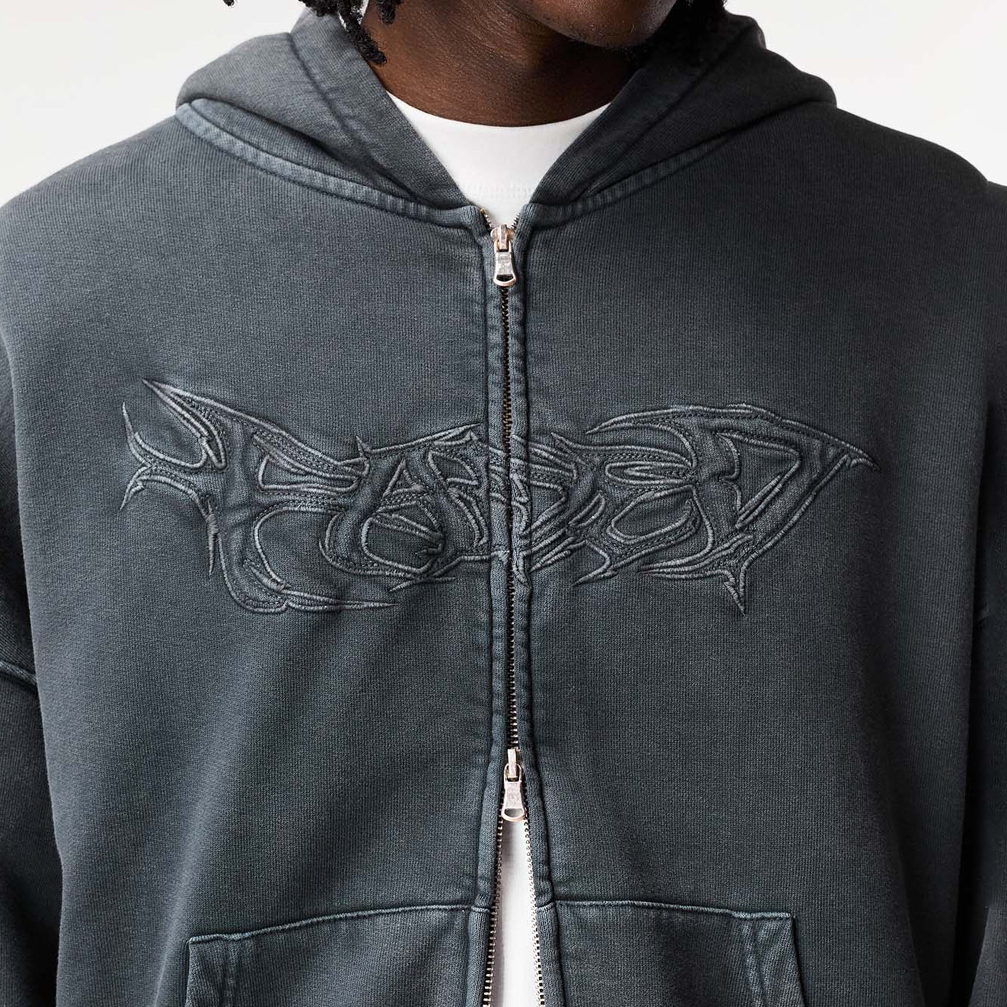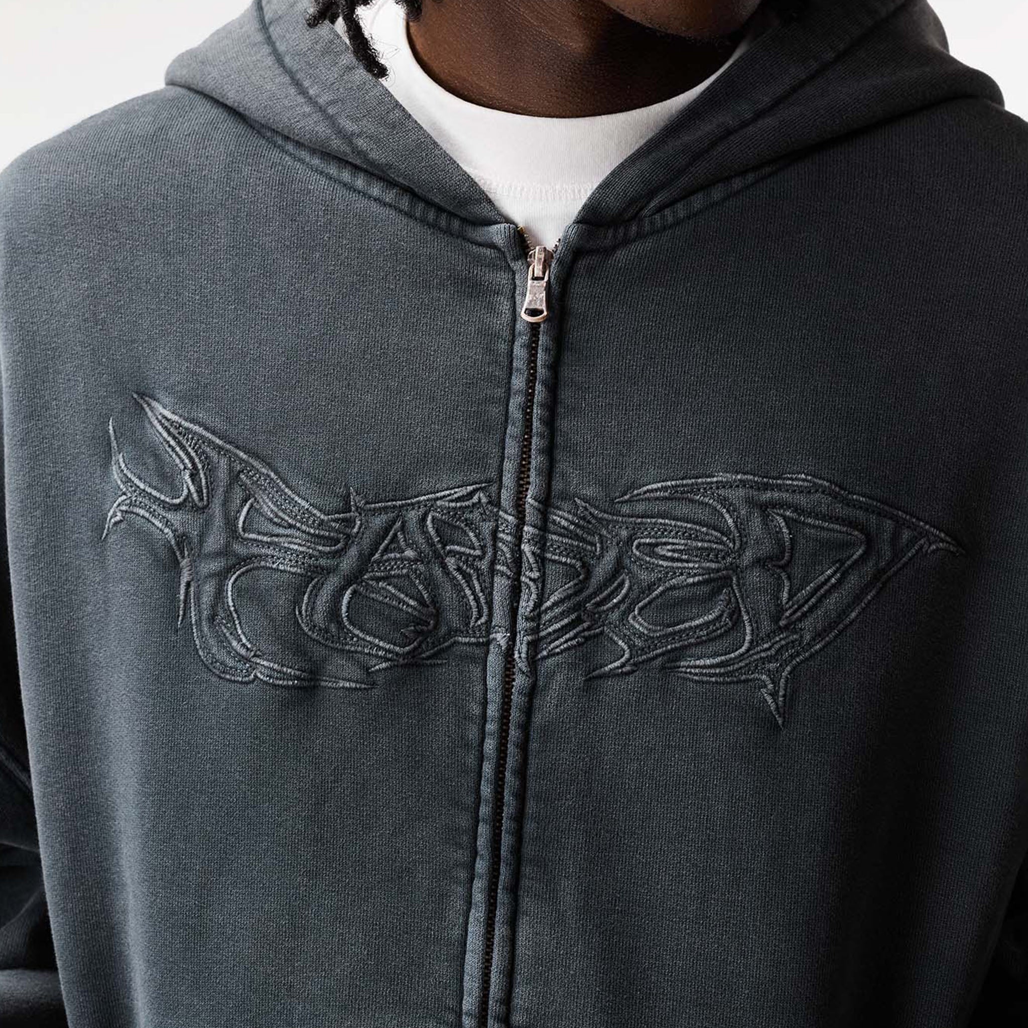 Elevate your everyday comfort with the Shadow Full Zip hoodie in washed black. Crafted with a premium 422 GSM fleece, it’s built to be your go-to layer for any season. The front features a bold, textured FadedStore appliqué logo, complemented by a screen-print logo for added depth. The cross-over hood is lined for extra warmth and a clean finish. A concealed double zipper gives you a modern, streamlined look, while the classic kangaroo pocket with side entry keeps your essentials close. Finished with sturdy ribbed cuffs and hem, this hoodie creates effortless style and can be interchangeable with the matching joggers or jeans and a box fit t-shirt.