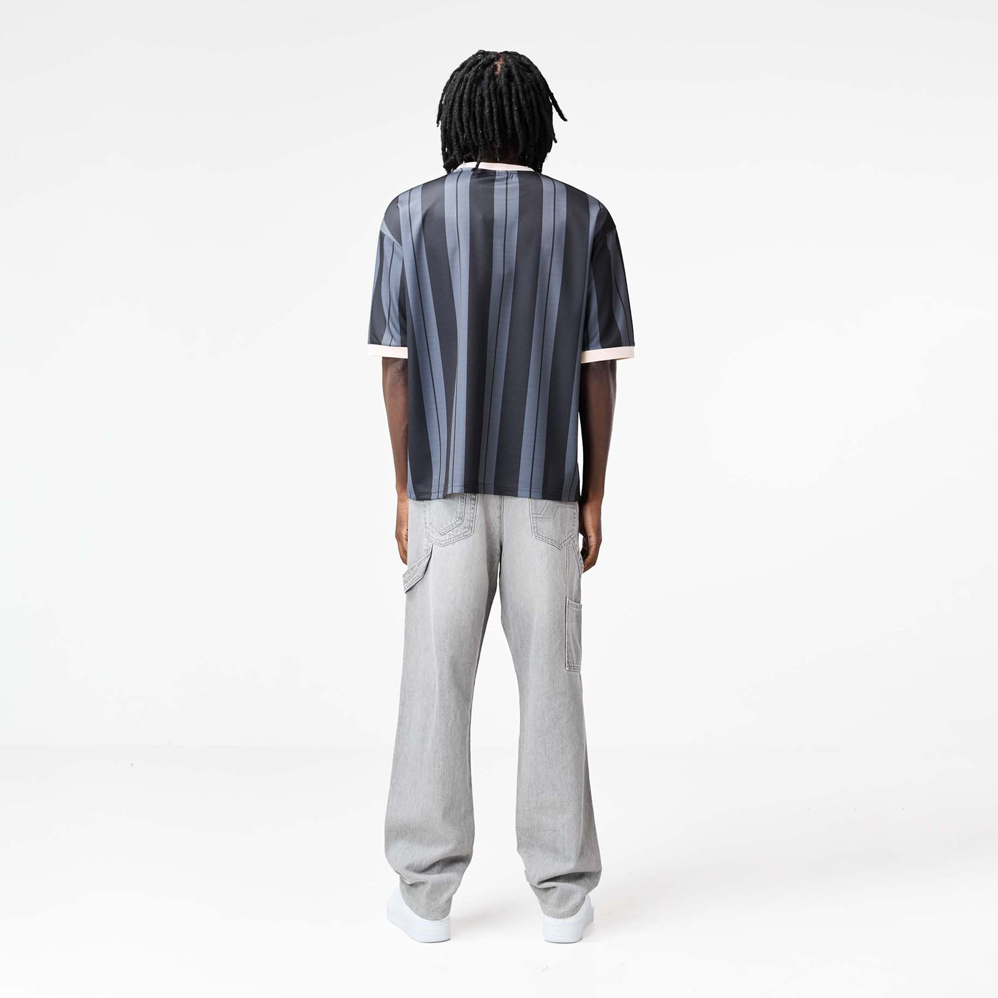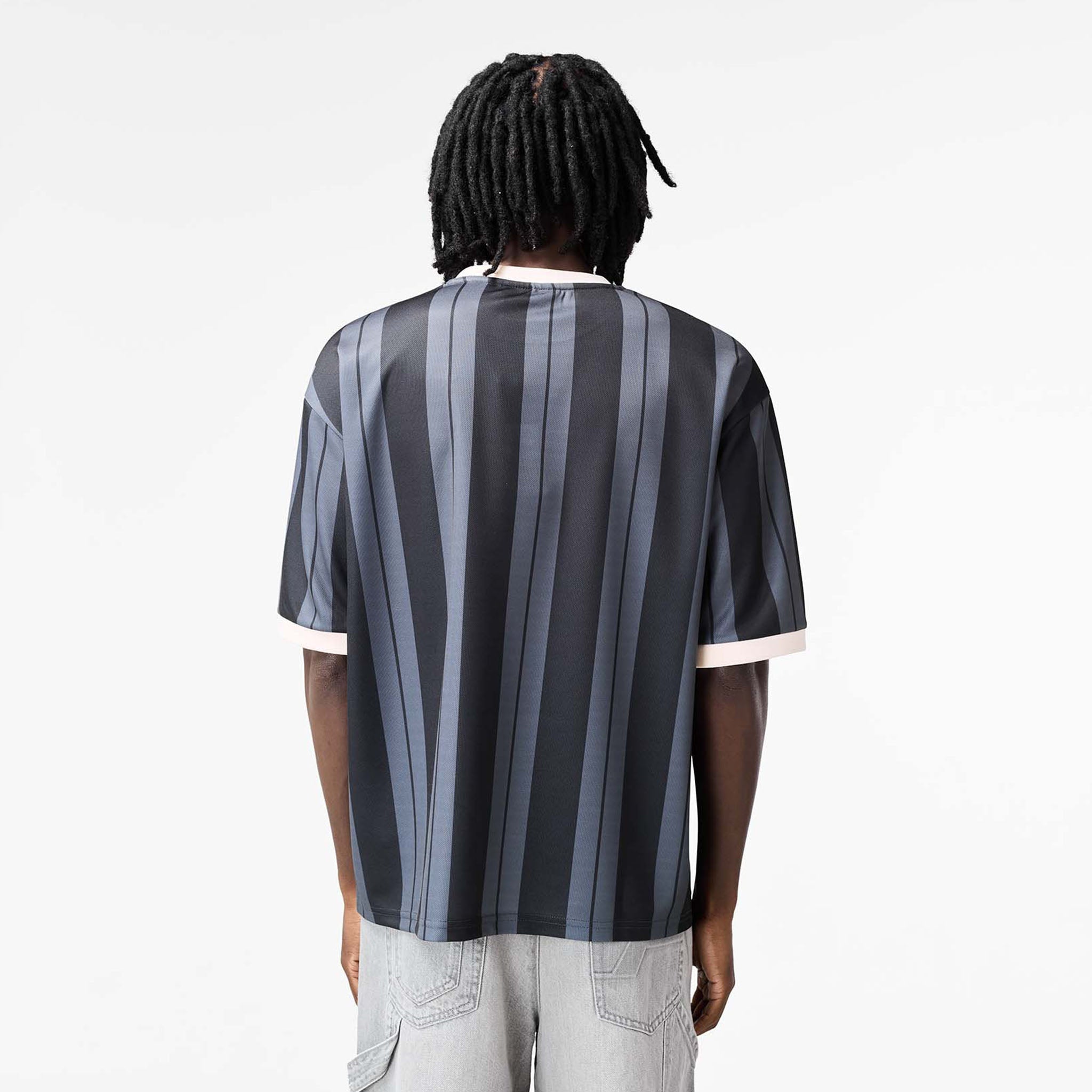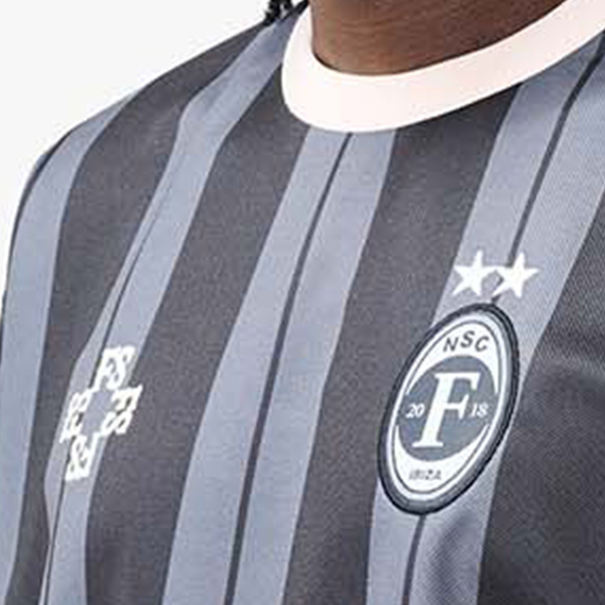 Introducing the Striker Football Tee, now reinvented in a minimalist black/off-white shade. This short-sleeve crew neck provides a contemporary revamp to a classic style. You'll find it boasts meticulously tailored neck and cuff finishes, along with a crisp, self-edge hem for an effortlessly clean profile. A subtle, integrated stripe pattern lends that unmistakable FadedStore character. Signature details include refined chest monogram, a prominent badge motif, and the classic FadedStore script elegantly positioned across the front—seamlessly blending a nostalgic and modern vibe.